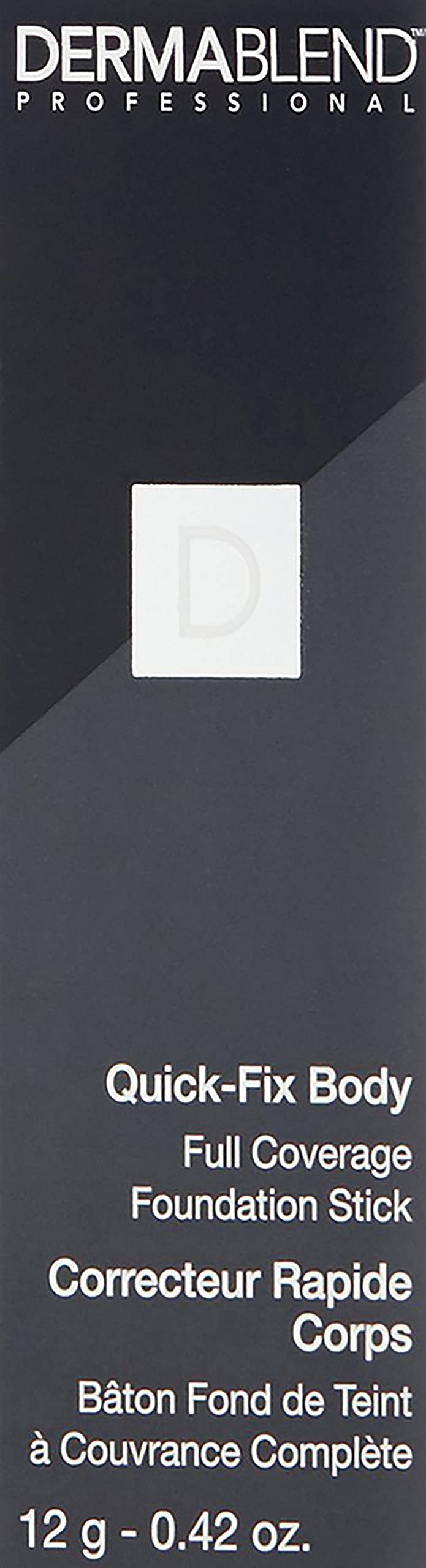 Product DescriptionOur quick-fix™ full coverage body makeup provides maximum coverage on-the-go for up to 16 hours of water, smudge, and transfer-resistant* color wear when set with our setting powder. Dermablend's maximum coverage foundation stick is clinically tested to repair the skin barrier. It is your quick and compact foundation for buildable coverage, midday touch-ups, and contouring. Our coverage contains high-performance pigments to cover tattoos, birthmarks, scars, bruises, and more. The creamy texture allows the formula to glide onto skin and blend smoothly when used to contour. BENEFITS: -Water, smudge, and transfer-resistant when used with Dermablend Loose Setting Powder -Non-comedogenic SUITABLE FOR: Maximum body coverage -Concealing tattoos, acne scars, burns, birthmarks, bruises, vitiligo, rosacea, wrinkles, pigmentary disorder, sun spots, and age spots -Body contouring -Post-surgical use and post-laser use.Brand StoryDermablend is powerful makeup for all; high-performance pigments available in a wide shade range. A dermatologist created brand with high safety standards: fragrance-free, allergy-tested, sensitive skin tested, non-comedogenic.