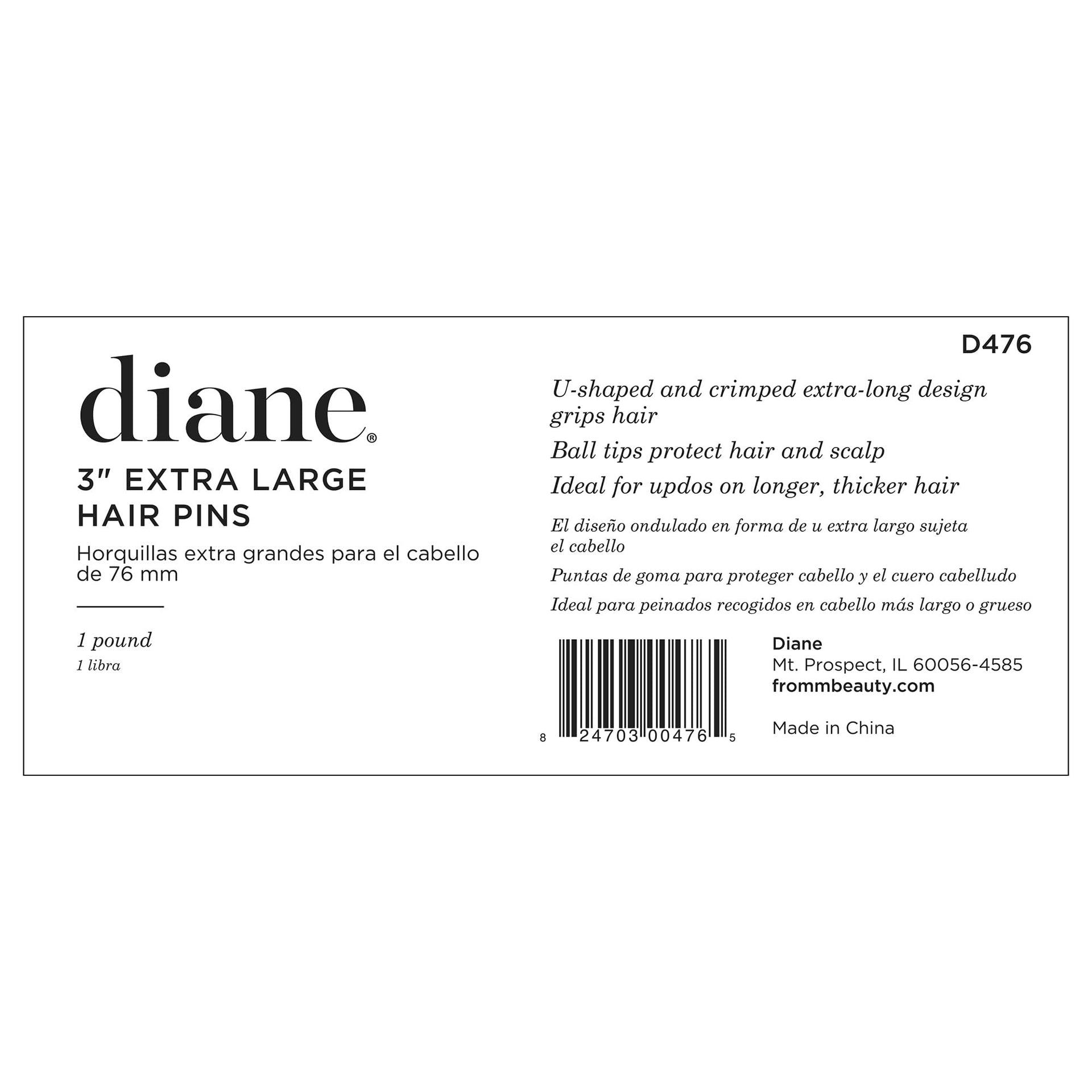Diane 3” U Shaped Hair Pins – 1 lb (≈400 Black Pins) with Ball Tips for Women & Girls, Secure Updos, Buns, Braids & Salon Styling