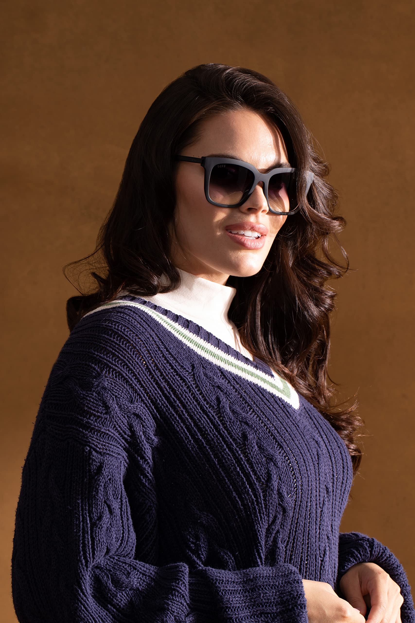 DIFF Hailey Lightweight Square Sunglasses for Women UV400, Matte Black + Sharp Grey Gradient