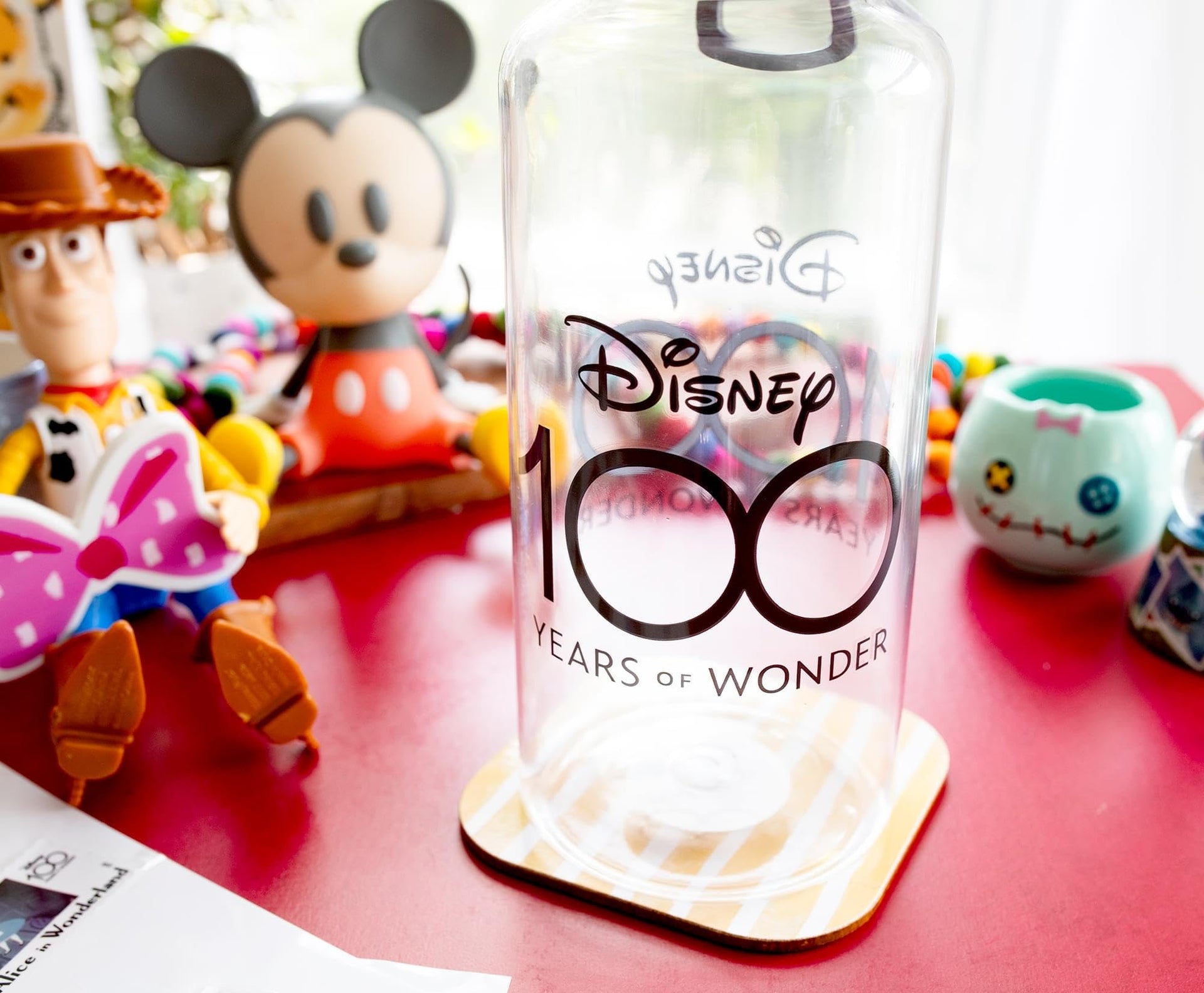 Disney 100 Years of Wonder Twist Spout Plastic Water Bottle Jug and Sticker Set For Personalizing | Holds 32 Ounces