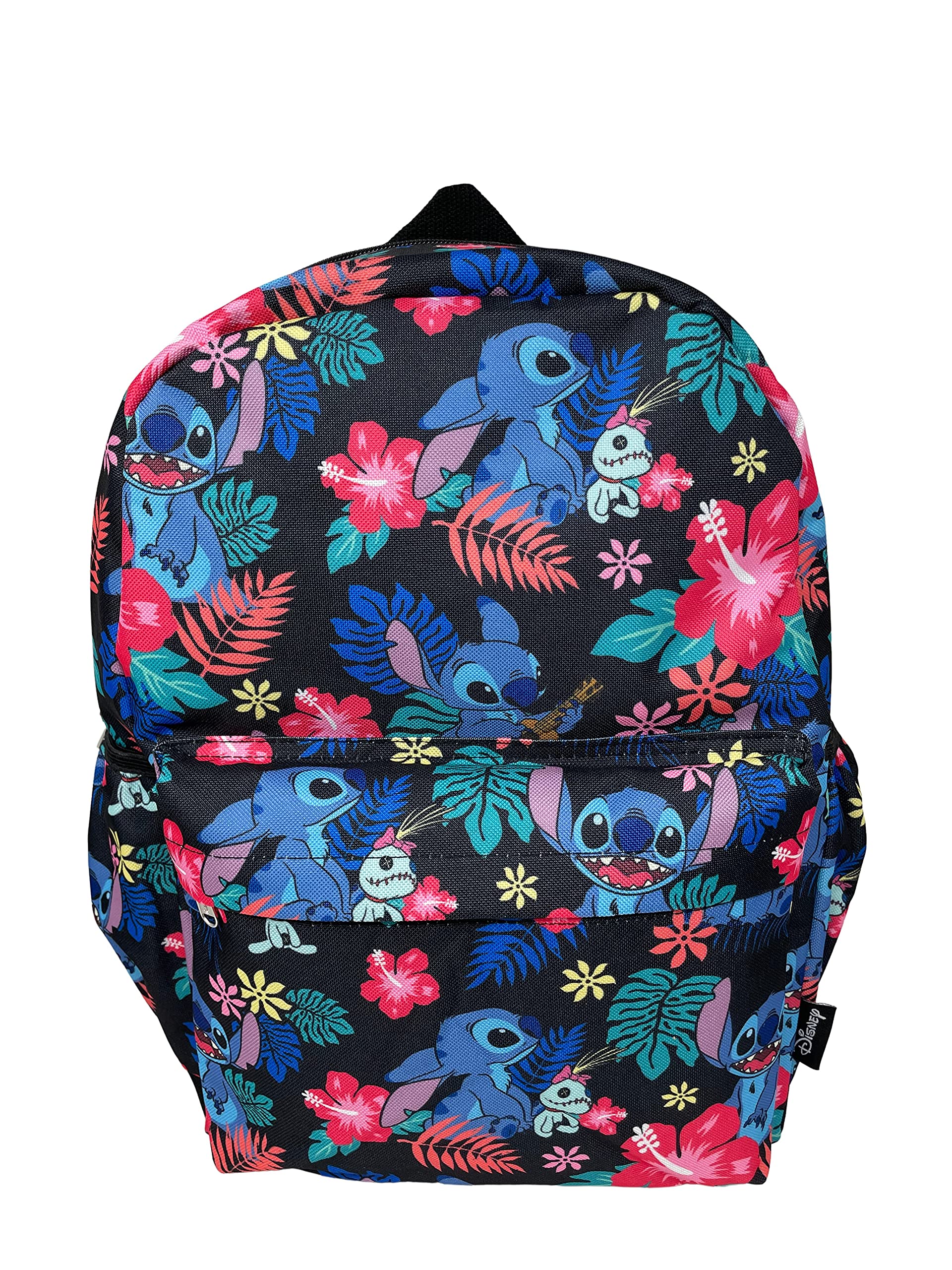 Disney Lilo and Stitch Allover Print Black 16 inch Girls Large School Backpack-black