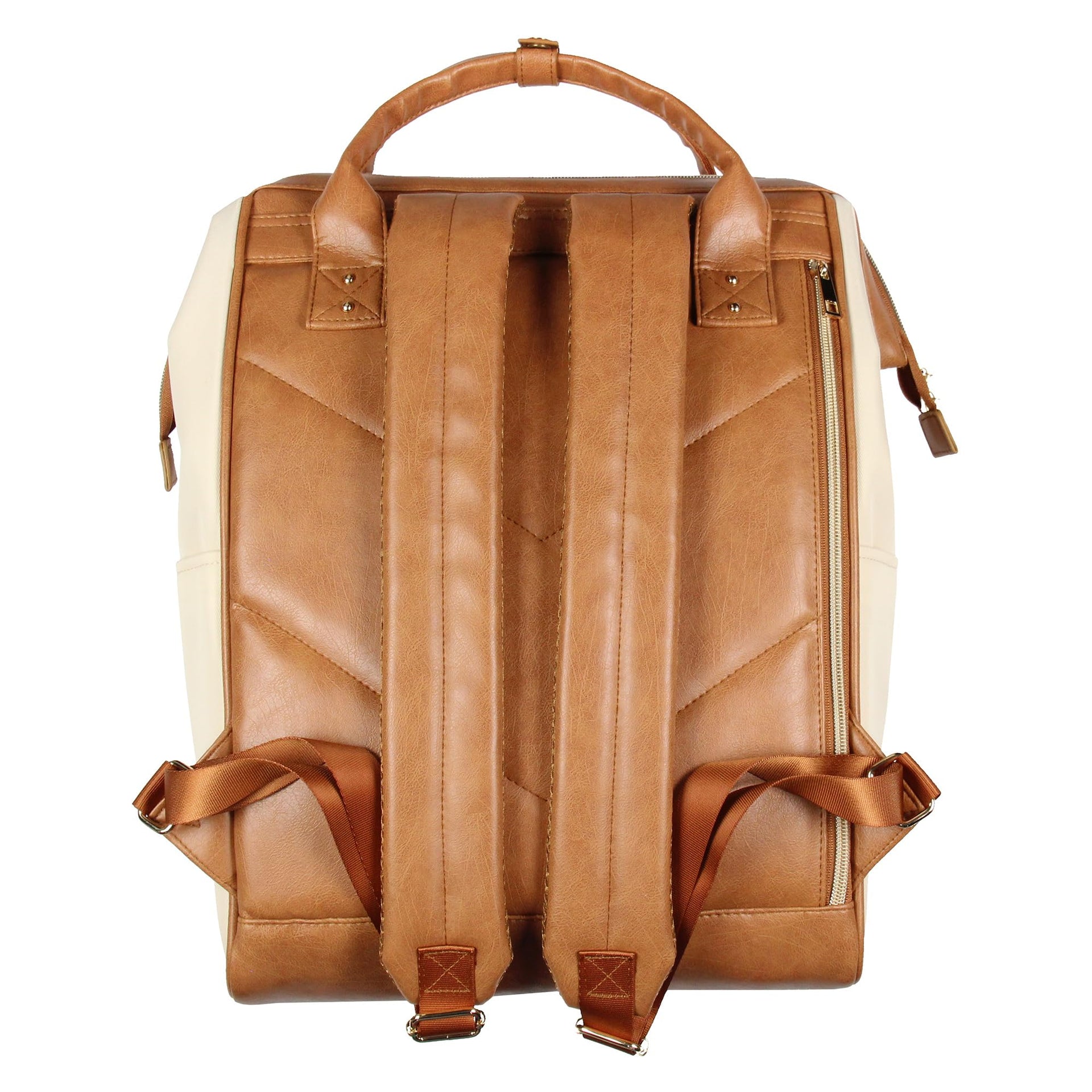 It showcases some incredible details! Some of the details it features are a large Stitch 3D character design that gives the impression he is hanging out of the outer zipper pocket winking at you, as well as a Hawaiian floral theme with the flowers on the outer zipper pocket being done in great embroidery. It has 2 outer zipper pockets, 1 in the normal spot and the other behind on the padded back, which is ideal for phones, tablets, and other devices you want to keep safe. It features an open side pocket where water bottles can be placed. The main zipper compartment opens up using a distinctive, hinged style, allowing it to easily put all your books and anything else you want inside. Inside, there are 2 smaller open pockets as well. The Stitch backpack is highlighted with beautiful brown faux leather on the bottom, the zipper areas, the dual-top handles, and the backside of the padded, adjustable backstraps.