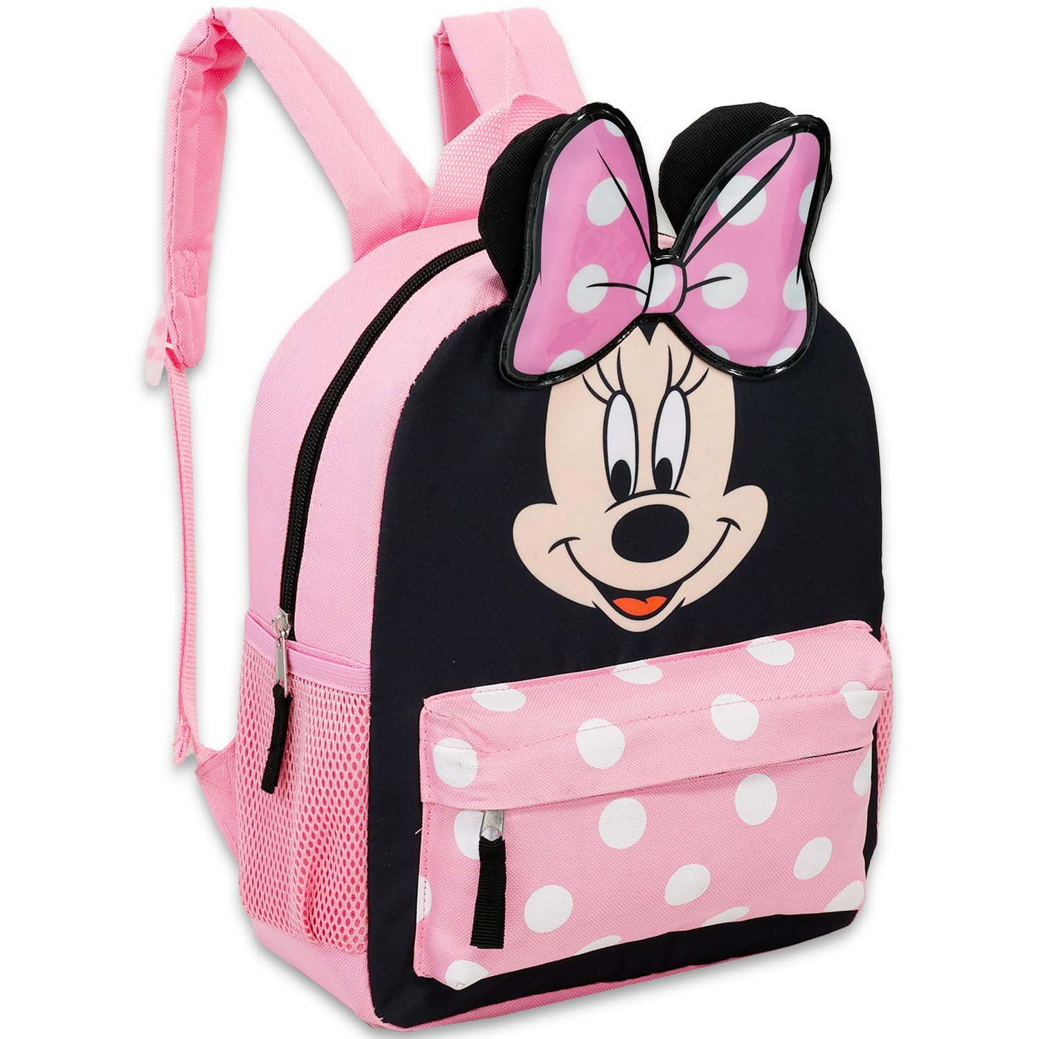 Disney Minnie Mouse Mini Backpack for Toddlers ~ Deluxe 12" Minnie Face Bag with 3D Ears and Bow (Minnie Mouse School Supplies Bundle)