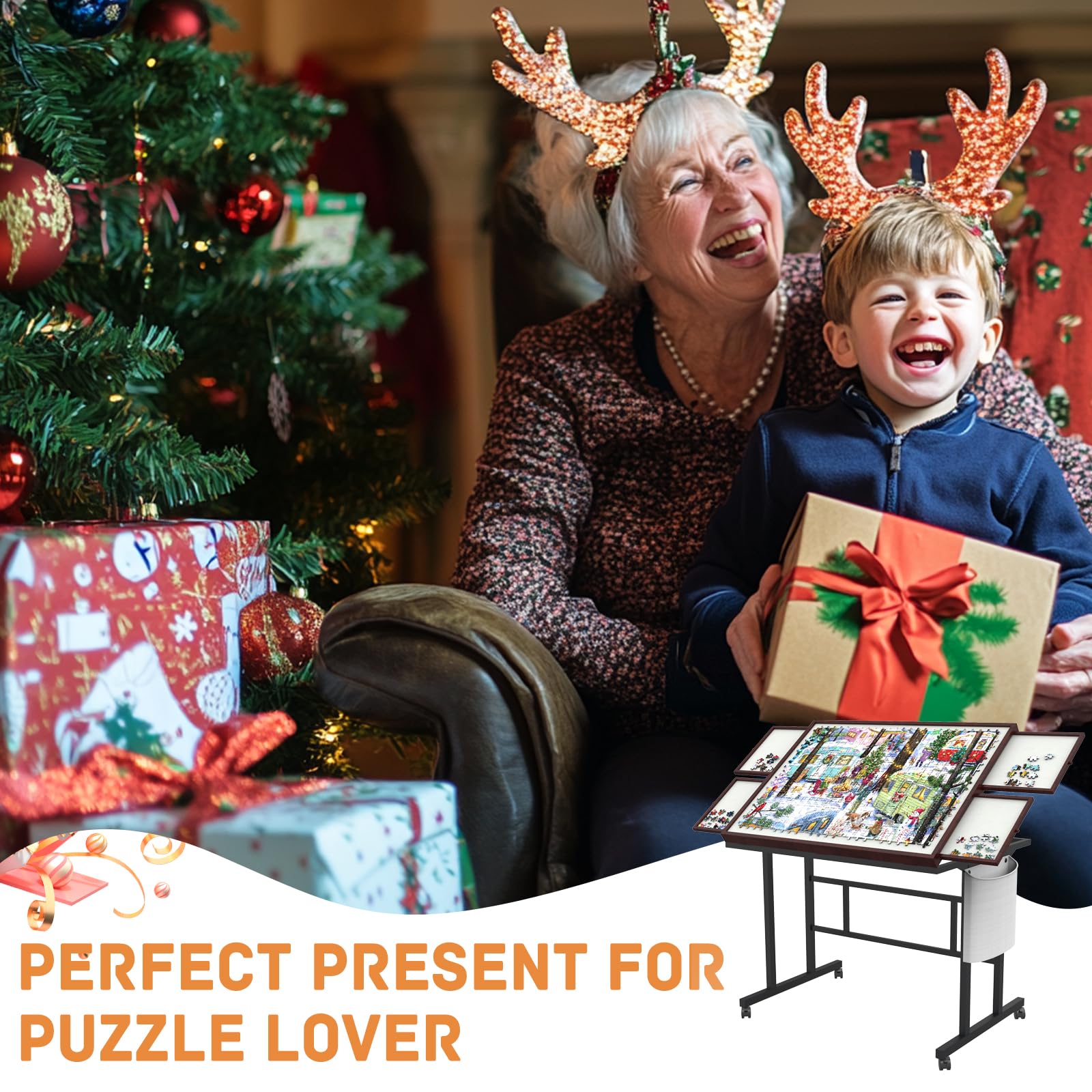 - Perfect Present:Stable design,5 adjustable angles,comes with pocket and cover,coffee,grey and black color,this perfect jigsaw puzzle table with legs specially designed for puzzledoer,and the board game table definitely is the best choice for your gift to family or friends!