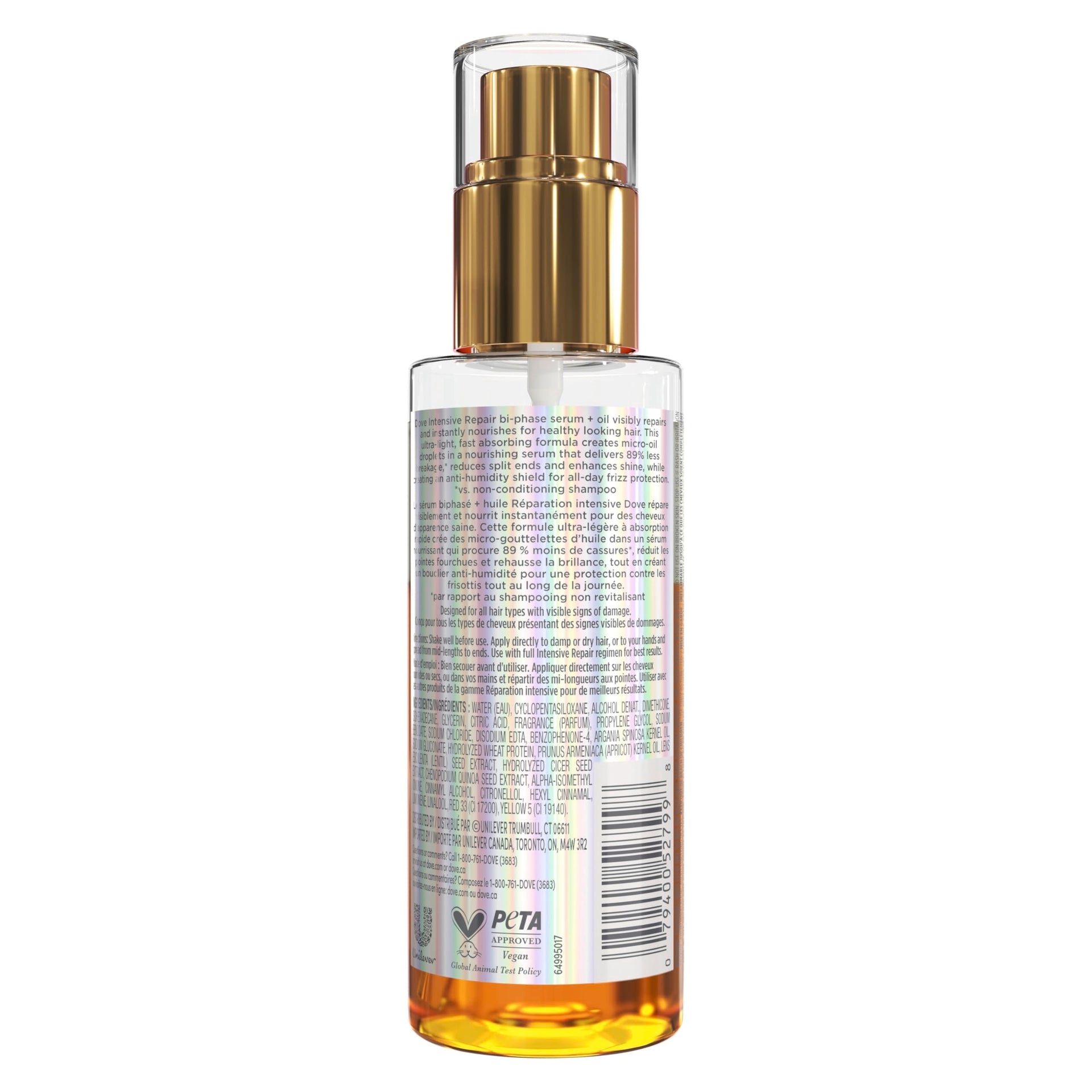 • HEALTHY-LOOKING HAIR IN 1 MINUTE: Nourish your hair instantly while leaving it visibly repaired in 60 seconds with Dove Intensive Repair Bi-Phase Serum + Oil with Amino Serum