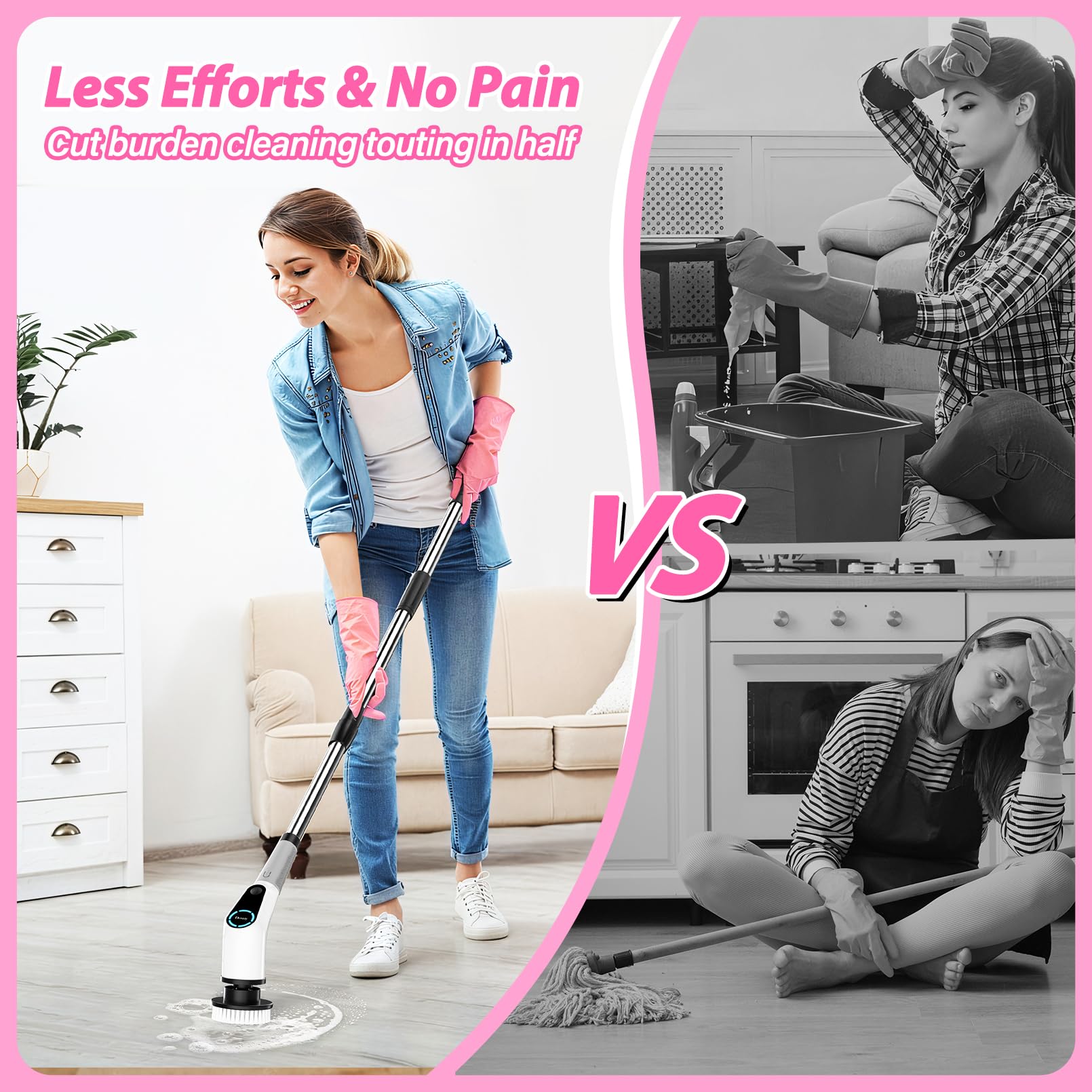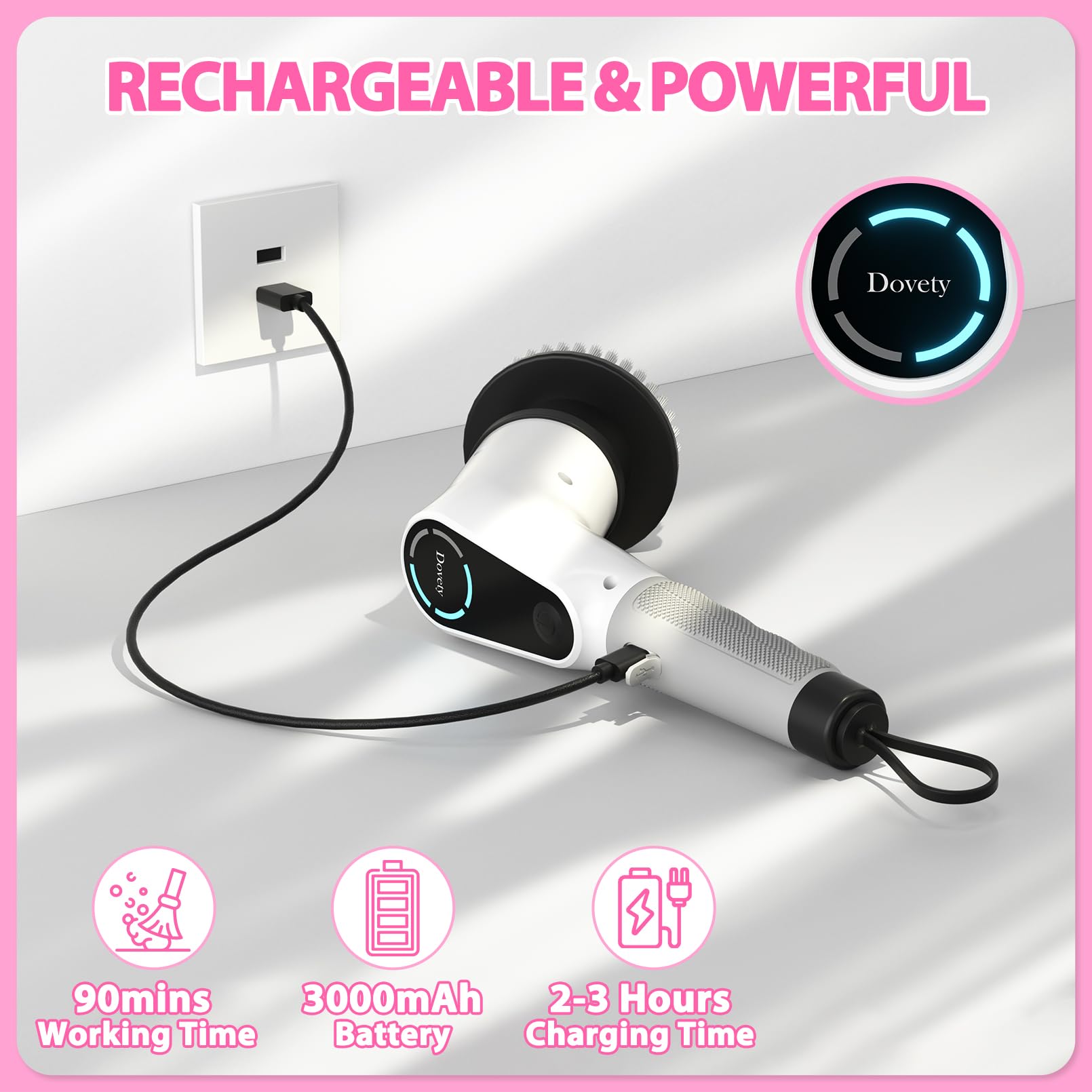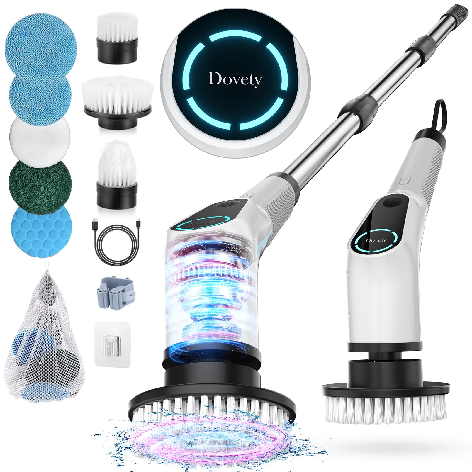 Dovety Electric Spin Scrubber – Cordless Cleaning Brush with 8 Heads, 2 Speeds & Extension Handle for Tile, Grout, Bathtub, Floor