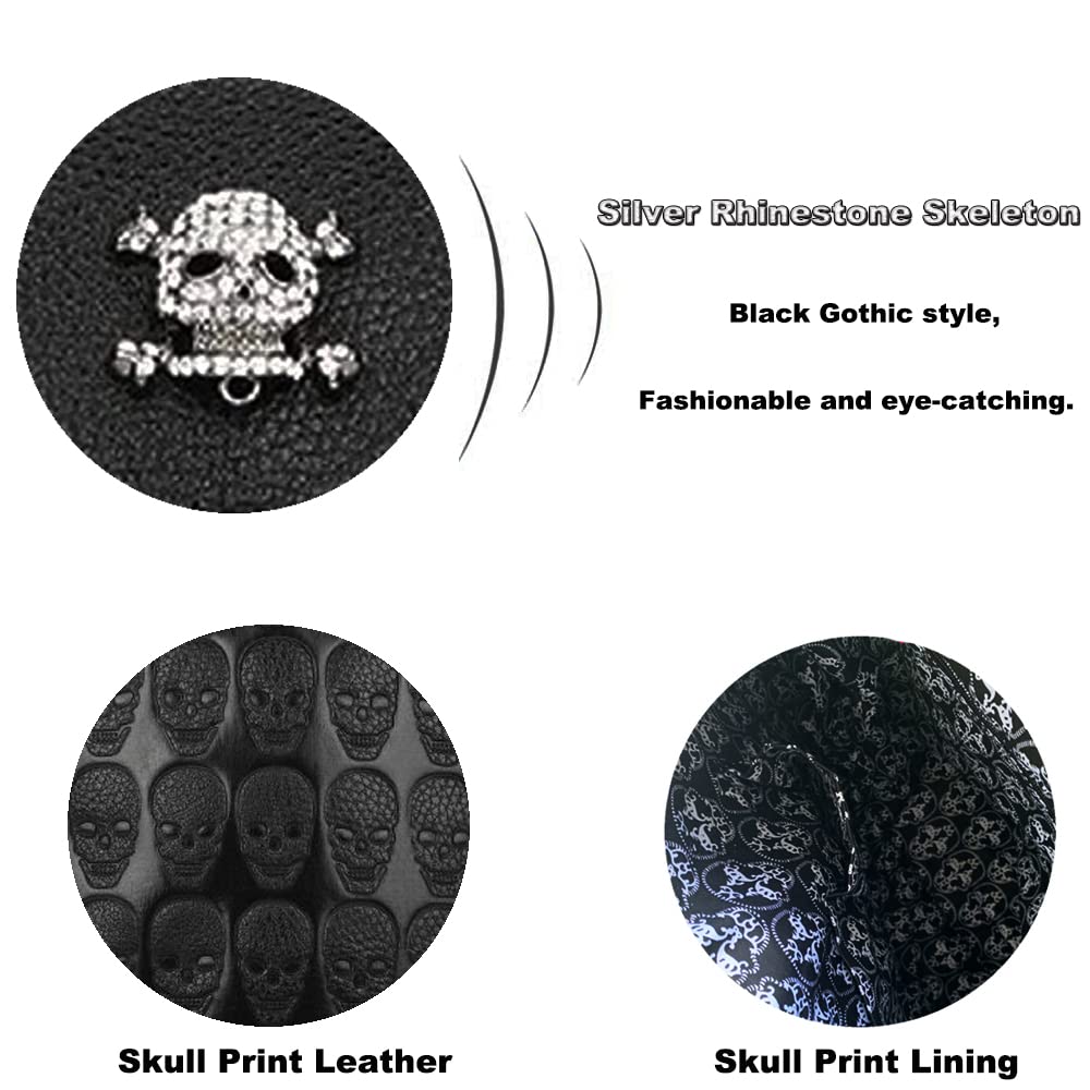 • 【Black Goth Purse】Zipper+Flap closed,Silver rhinestone skull decoration and high-quality metal chain make the handbag shine.It’s Sturdy and durable. Constructed with detailed streamlined stitching. Excellent workmanship