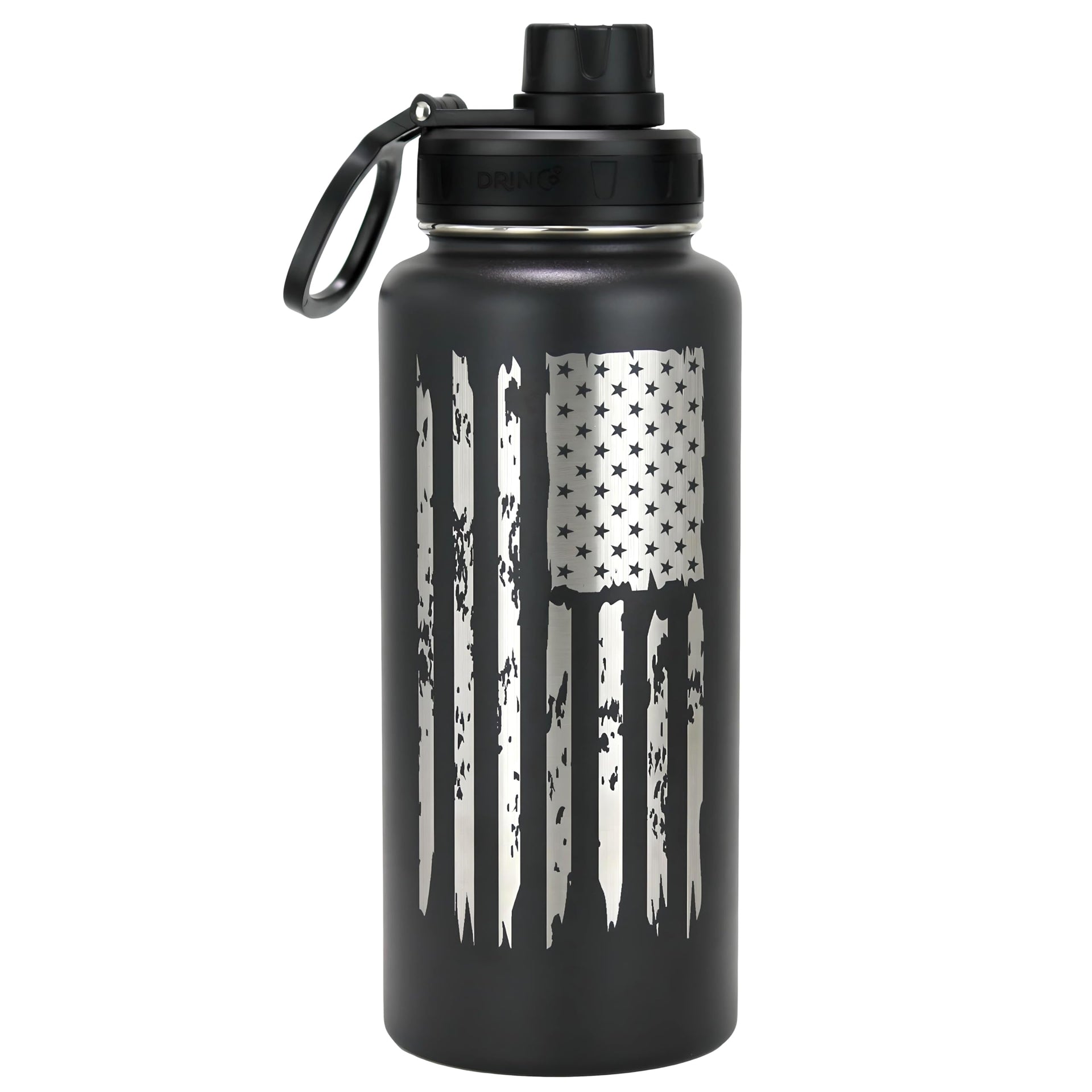 DRINCO Stainless Steel Water Bottle Spout Lid Vacuum Insulated Double Wall Water Bottle Wide Mouth Leak Proof Keep Cold Sport Camping (USA Flag)