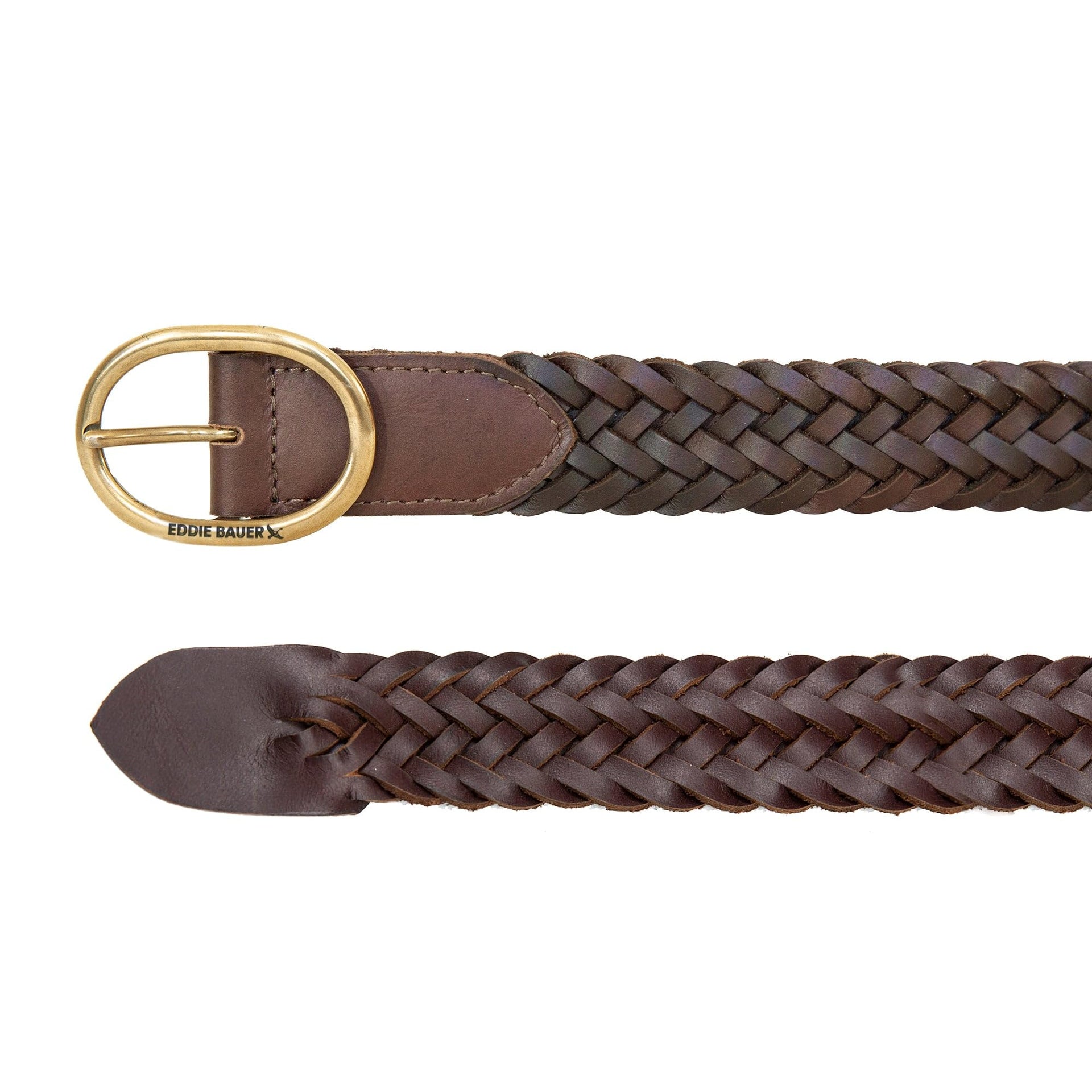 Eddie Bauer Women's Casual Leather Belts with Durable Metal Buckle, Center Bar Woven - Brown, XX-Large