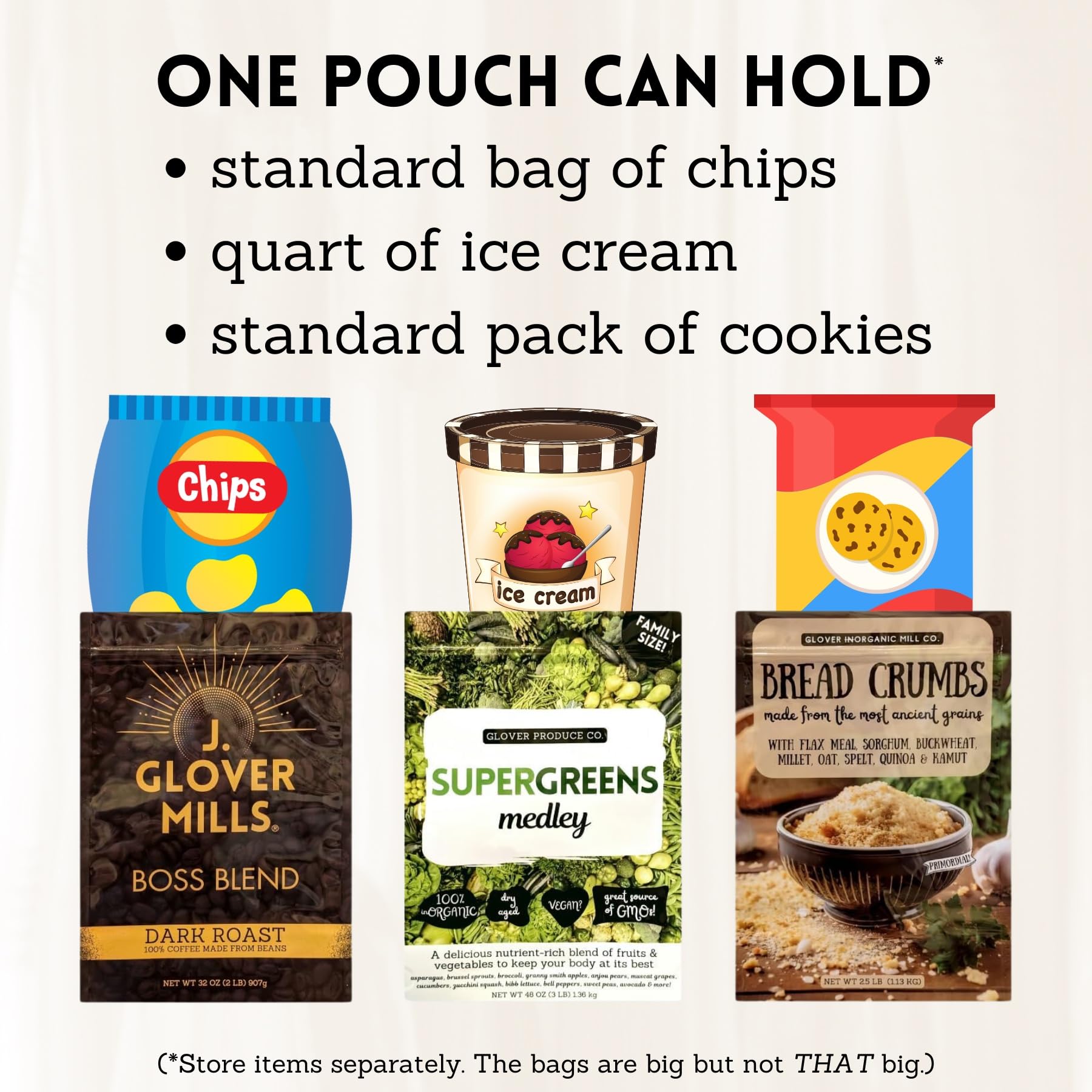 Keep your favorite snacks and secret surprises safe from prying eyes with Elftastic Hiding Bags! Developed by clever parents who were tired of finding their favorite treats *missing,* these bags let you store snacks and gifts in plain sight. With three unique, inconspicuous designs*Coffee Beans, Super Greens, and Oat Medley*these bags will blend seamlessly into your pantry, fridge, or freezer, effectively camouflaging your snacks. Each set includes three durable, high-quality bags, sized at 10* x 15* with a gusseted bottom and zipper-style top, making them perfect for a wide variety of snacks and gift items. Save the surprise and enjoy your treats in peace!
