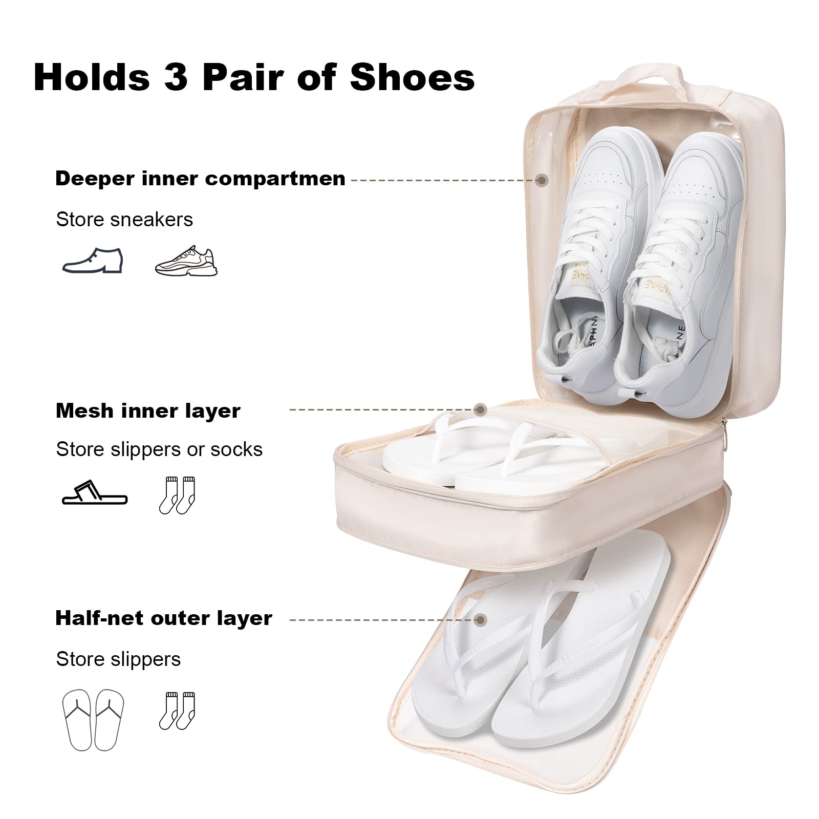 Eneteck Shoe Bags – Holds 3 Pairs, Travel Shoe Organizer for Carry-On Luggage & Flying Essentials