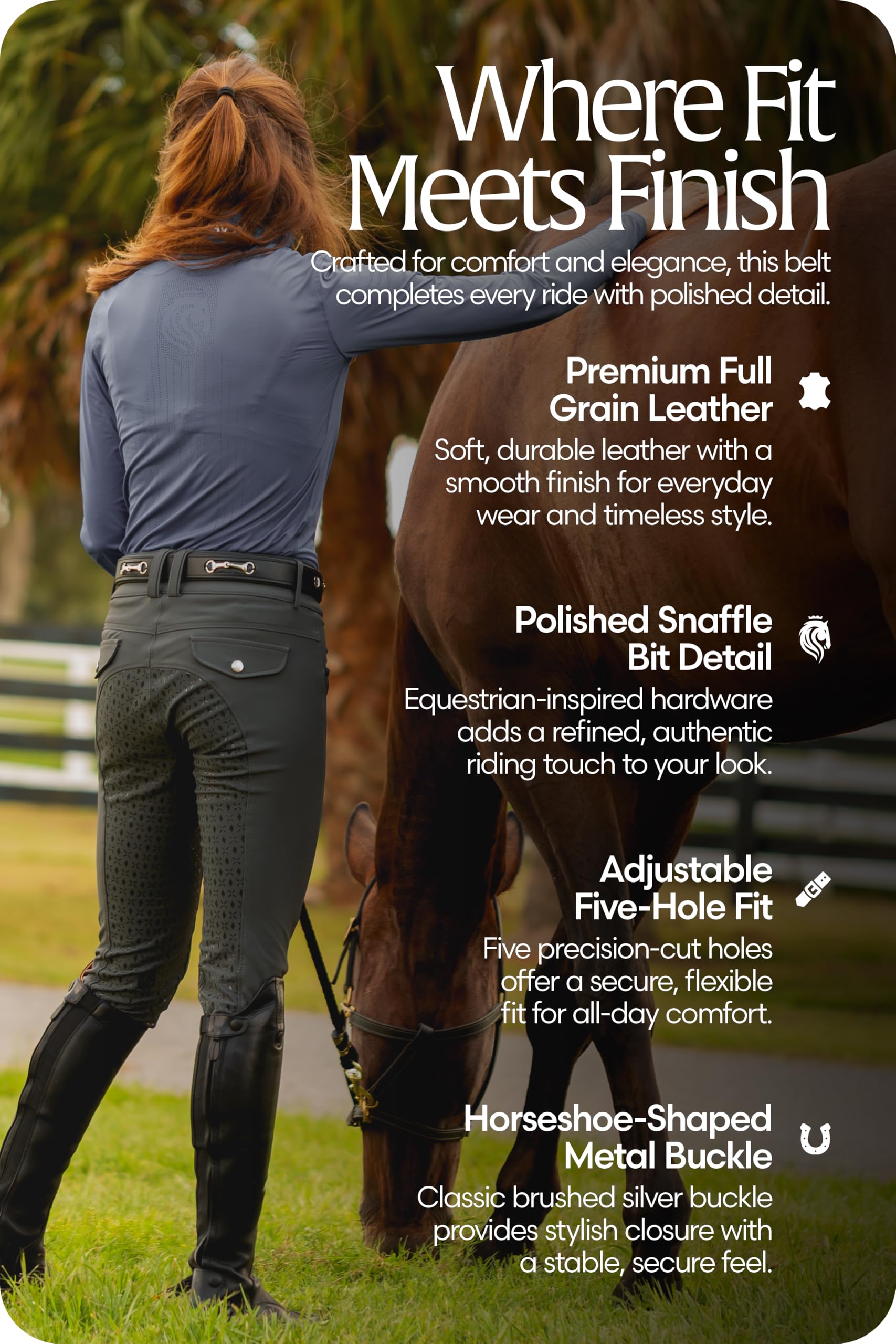 • A classic show-worthy leather belt with a nod to your equestrian passion