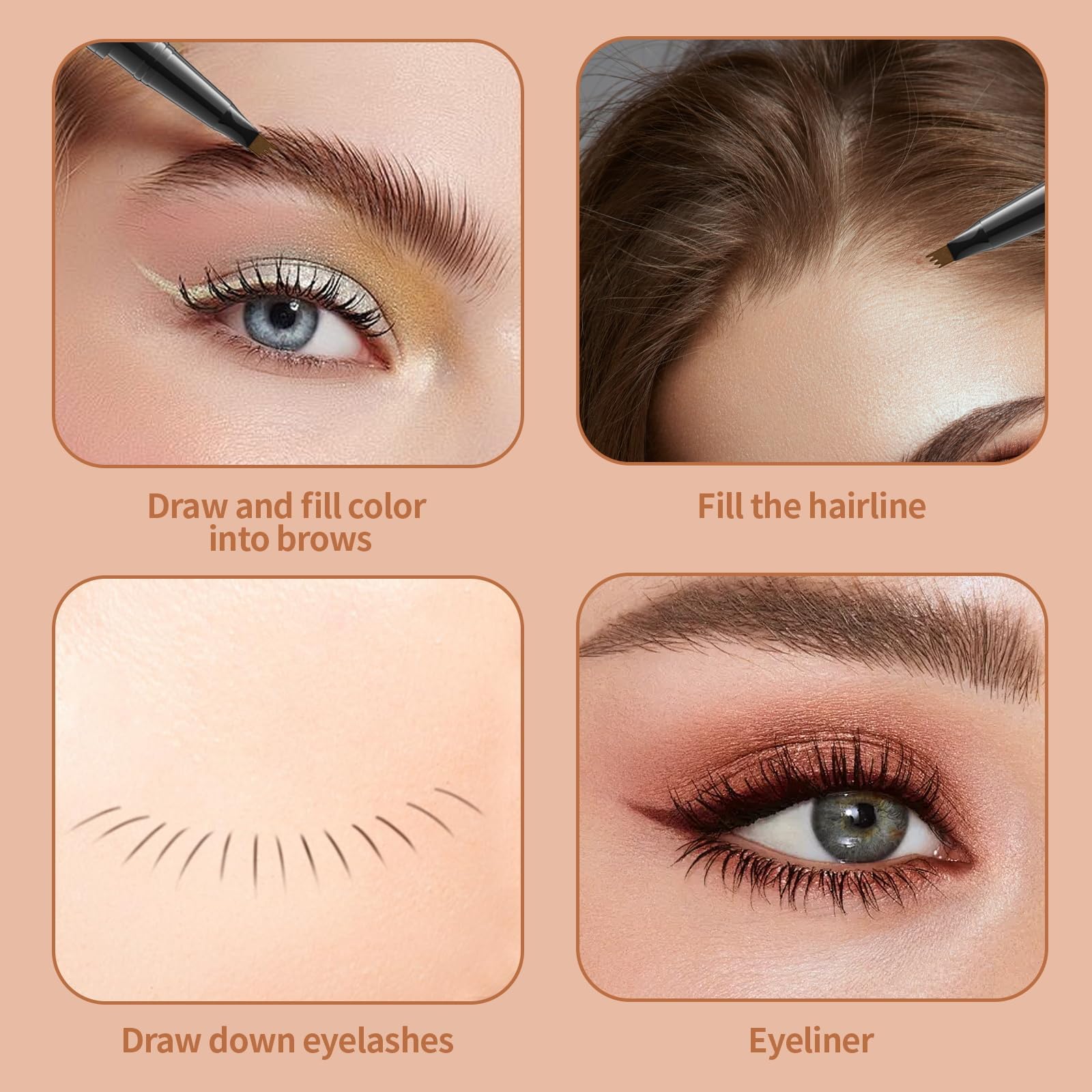 Eyebrow Pen, 2-in-1 Dual-ended Microblading Eyebrow Pencil, Eye Brow Pencils for Women with 4-Fork-Tip & Precise Brush-Tip Create Natural Hair-Like…