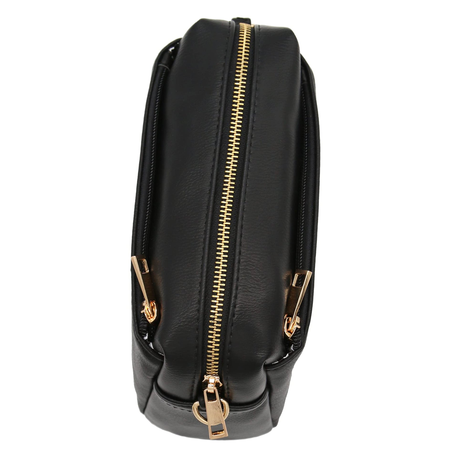 FashionPuzzle Small Triple Zip Crossbody Bag (Black)