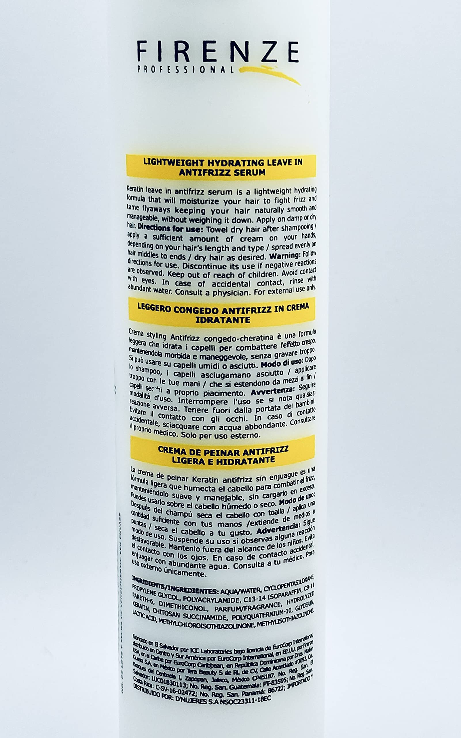 Firenze Professional Keratin (KAS) Hydrating Anti-Frizz Serum 300ml/10.1 fl oz - Smoothing & Shine Treatment for Dry or Frizzy Hair