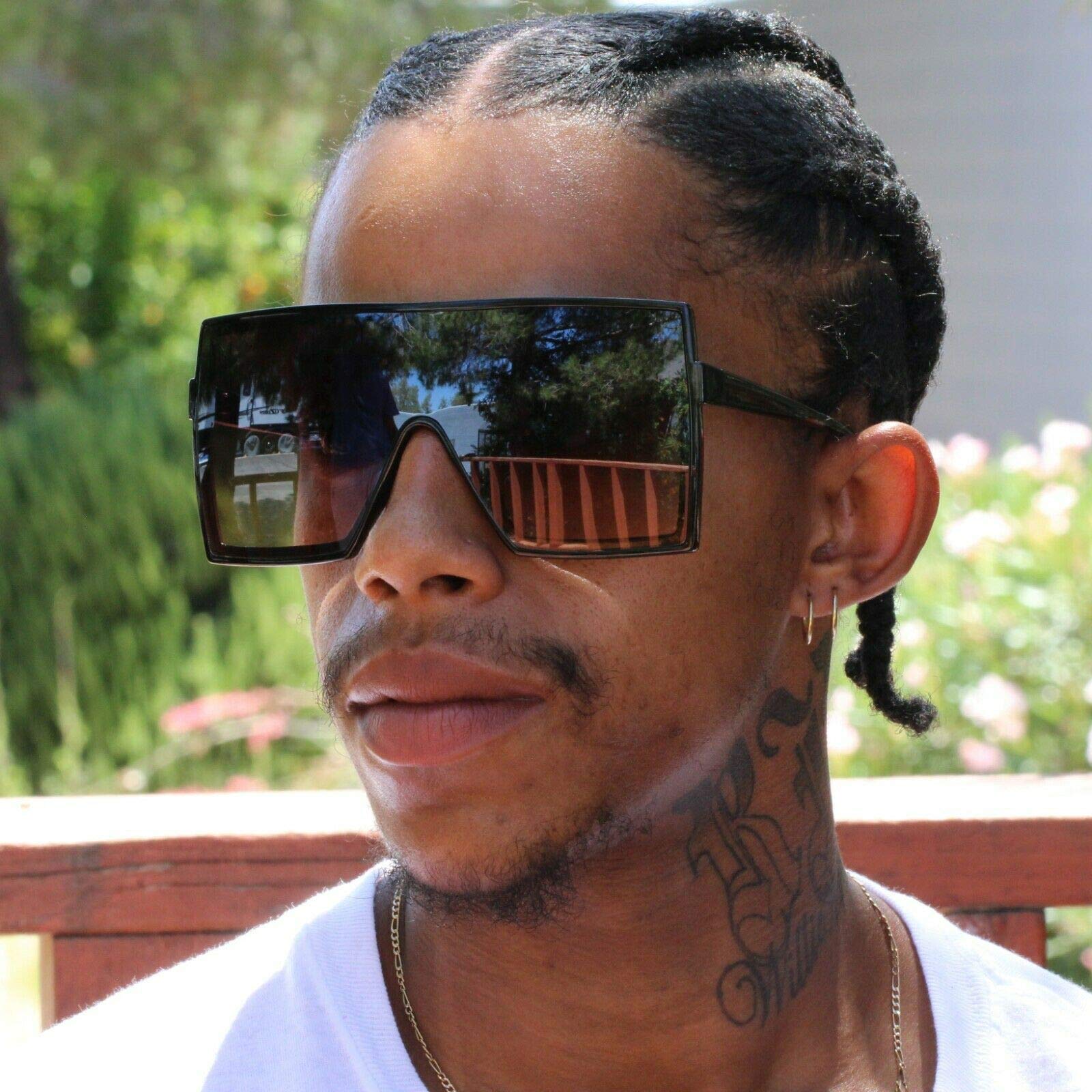 FLAWLESS Large Sunglasses for Women Oversized Men Flat Top Fashion Trendy Mono Lens Shades (Black/Smoke) (Black)