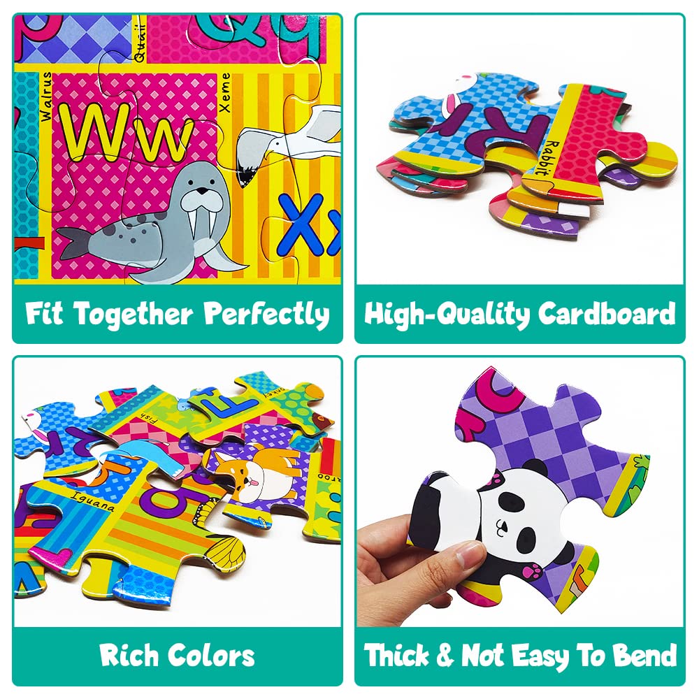 Animal Alphabet Floor Puzzle for Kids, 48 Pcs A-Z Educational Jigsaw, Preschool Learning Toys for Boys & Girls, Toddler Puzzle Ages 3+