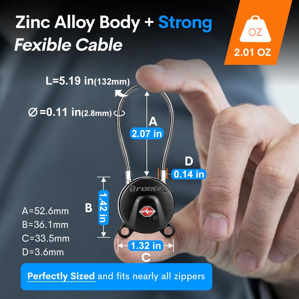 Forge TSA Approved Luggage Locks – Ultra Secure TSA006 Dimple Key Travel Padlocks with Zinc Alloy Body, 2 Pack Cable Locks (Black)