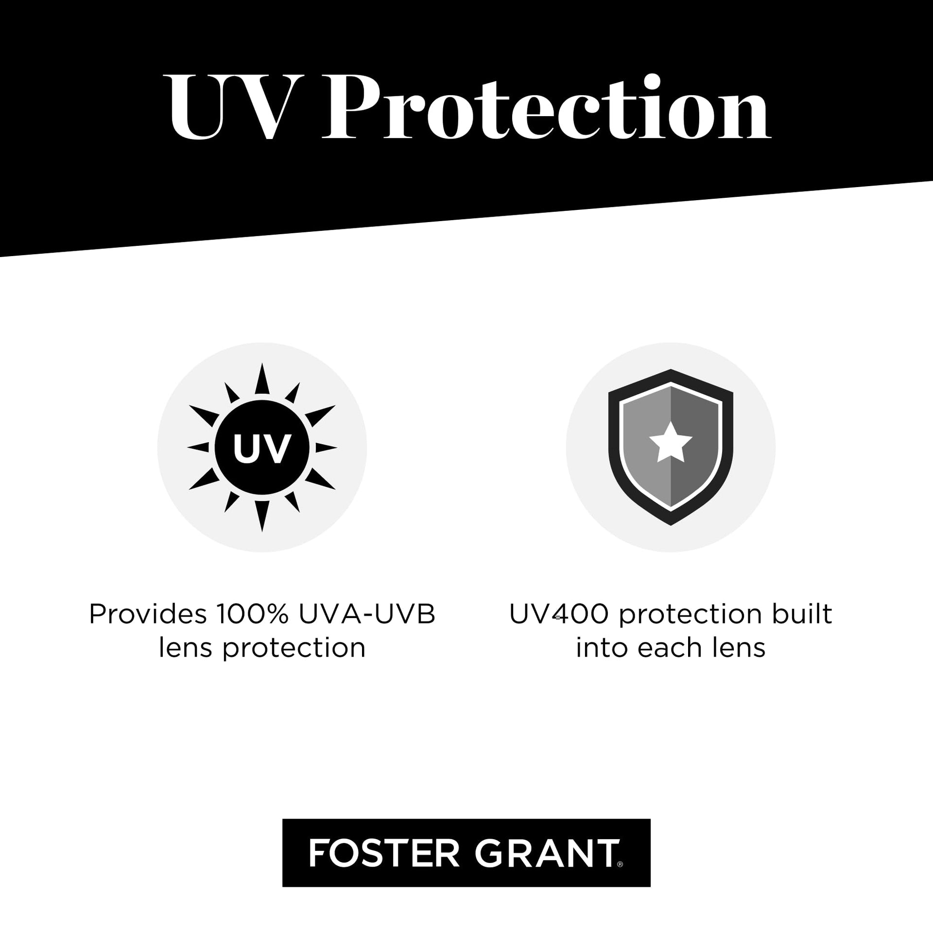DescriptionSay goodbye to sun glare with these cute sunglasses for women. Expertly designed to enhance visual clarity and definition without sacrificing on comfort or style, our square sunglasses for women offer superior quality. Constructed from durable polycarbonate plastic, these retro sunglasses feature a trendy tortoise-shell pattern. Brown lenses offer excellent dual performance and reduce the often blinding glare that reflects off water, snow, and shiny surfaces. Our vintage sunglasses also boast 100% UVA/UVB eye protection. Worn for 90 years by global icons and trendsetters, Foster Grant sunglasses are the original American sunglasses brand. Now Foster Grant is the market leader in popular-priced eyewear with a full range of sunglasses, reading glasses and digital glasses. Foster Grant believes in real style - eyewear that is effortlessly fashion-forward and perfectly you, with true quality you can see and feel. Our talented designers in New York, London, and Milan search the globe for the freshest looks and inspiration, and transform them into fashion-forward styles that are uniquely flattering and wearable. Every pair of our eyewear is carefully constructed to give you the most comfortable fit. And with every stylish pair affordably priced, you can create all the looks to express the many shades of you.