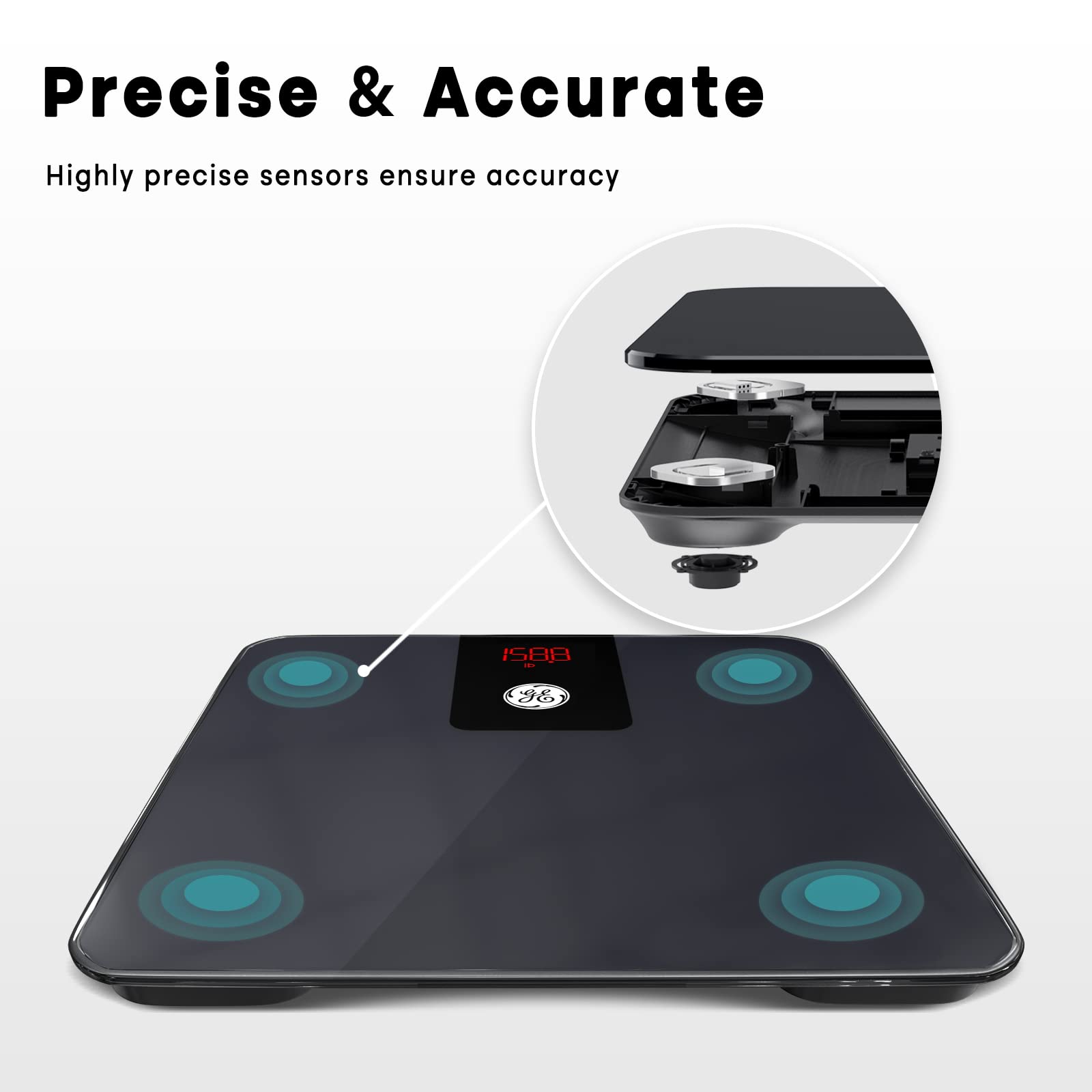 GE Digital Bathroom Scale for Weight, Smart Bluetooth Body Weight and BMI, Electronic Black Weighing Scale for Bath Home, Accurate 400lb Capacity