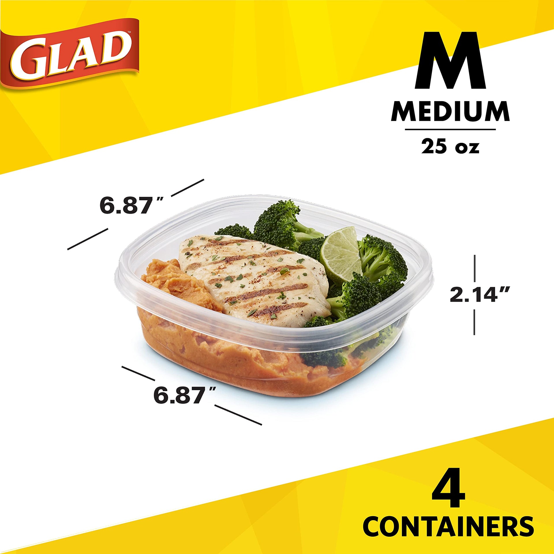 • THE RIGHT SIZE FOR EVERYTHING - GladWare comes in many shapes and sizes to suit your needs. This pack of GladWare Design Series containers hold up to 24 ounces of food, making it the go-to for your next family picnic