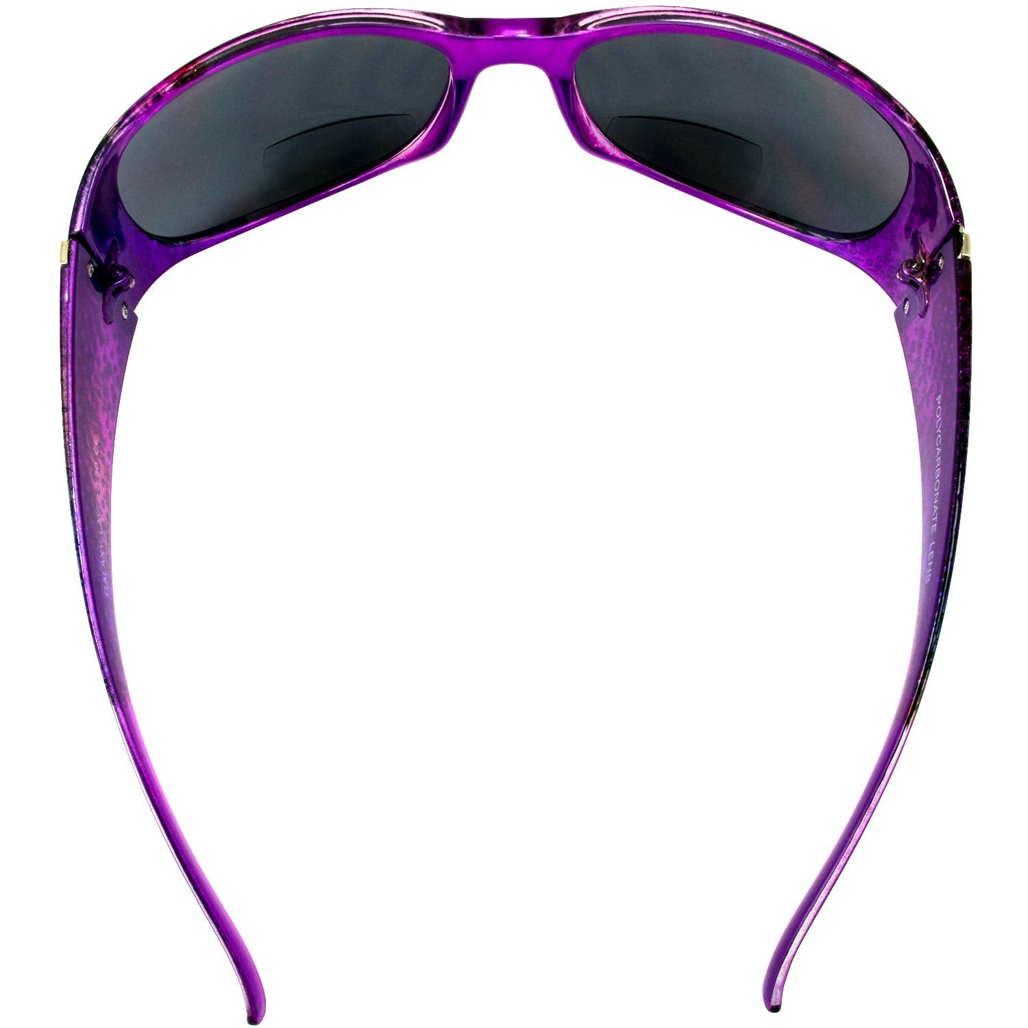 Global Vision Galaxy Womens Bifocal Fashion Motorcycle Sunglasses Chrome Rhinestone Look Lavender Frames Smoke Lenses 2.5 Magnification
