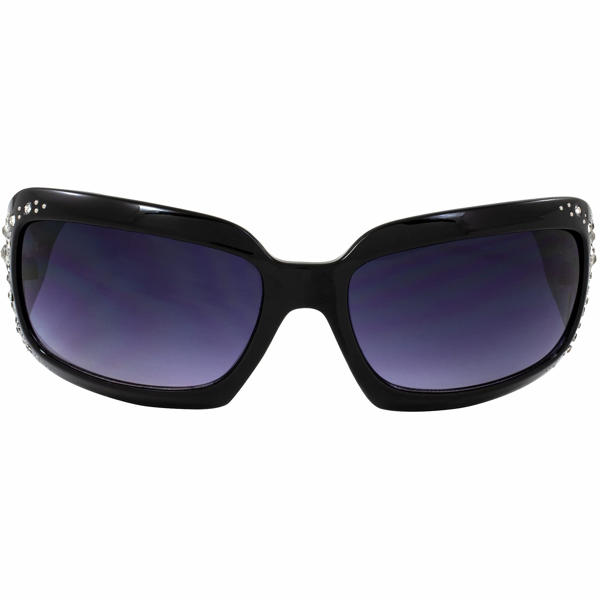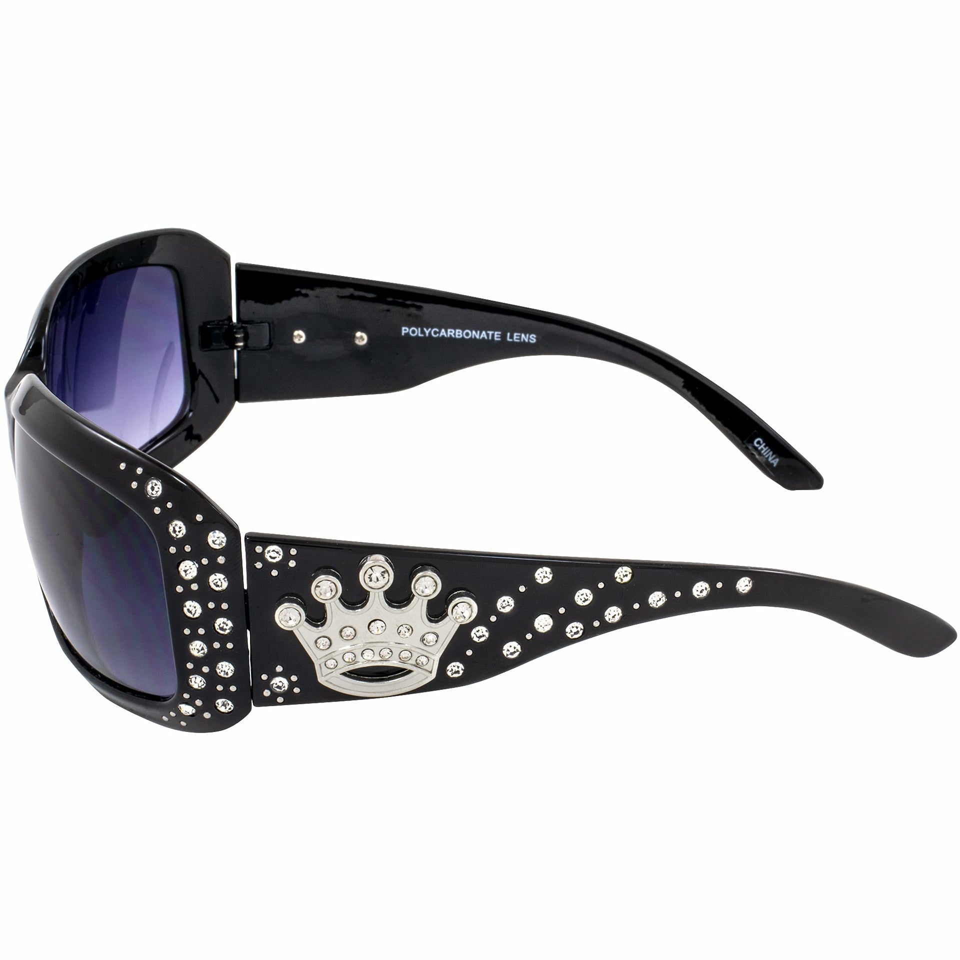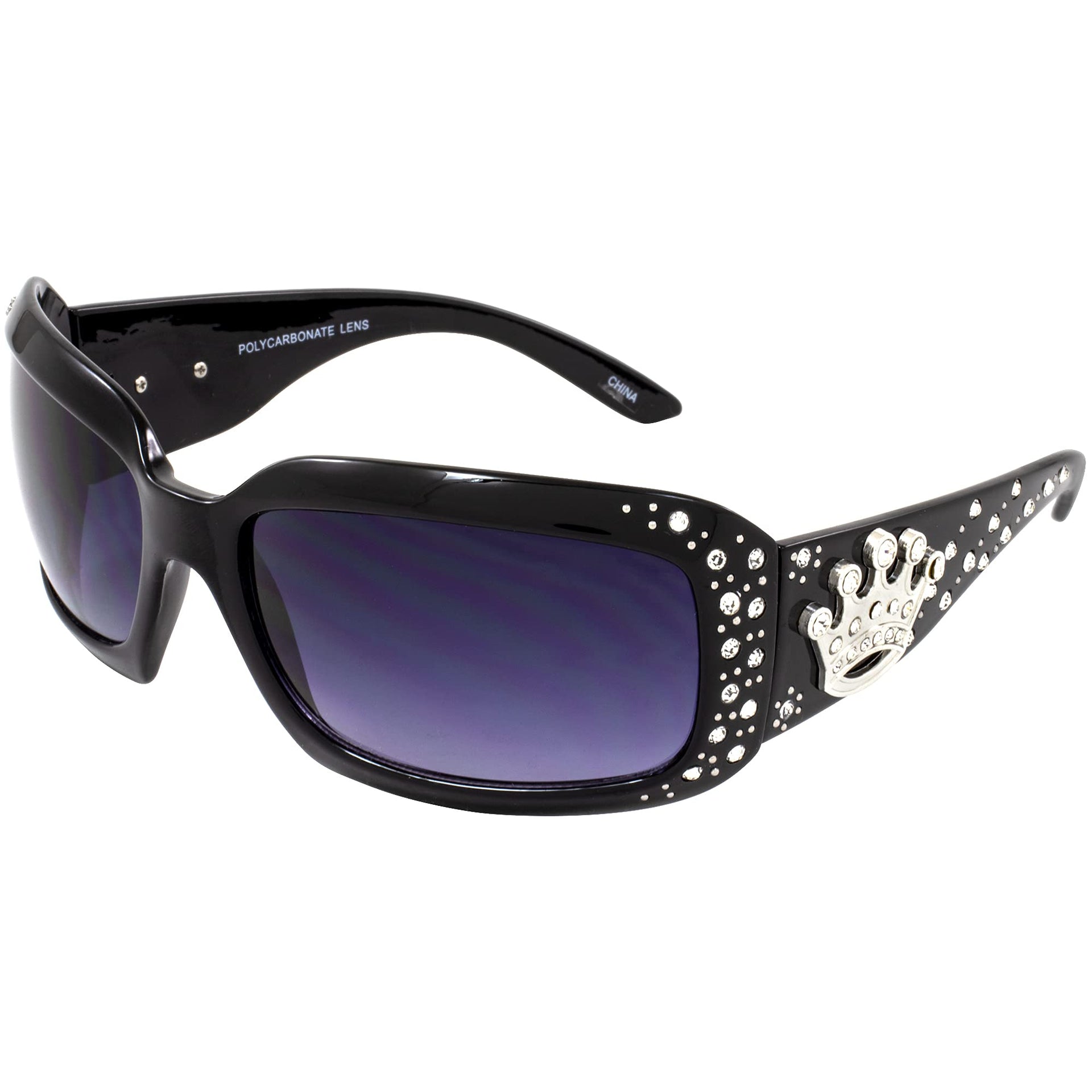 • Features a Silver Metal Crown Accent Piece with Rhinestones and Metal Studs on the Temples.