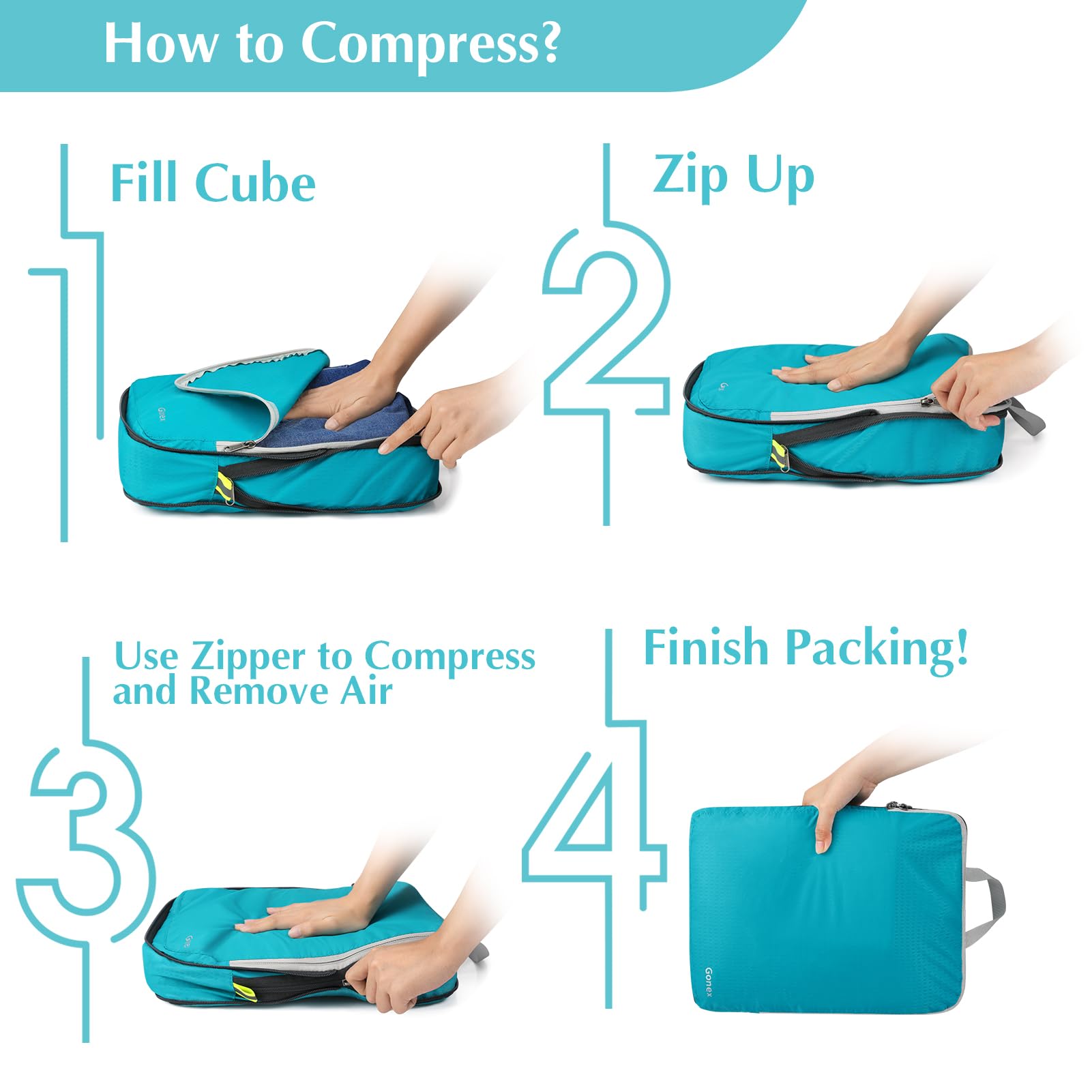 - Space Saver: The double zippers of the packing cube compress clothes perfectly and help save space in your carry-on luggage or travel backpack. It's excellent travel gear for minimizing your carry-on size. The quick grab handle allows easy access when pulling out packed cubes from a suitcase or backpack.