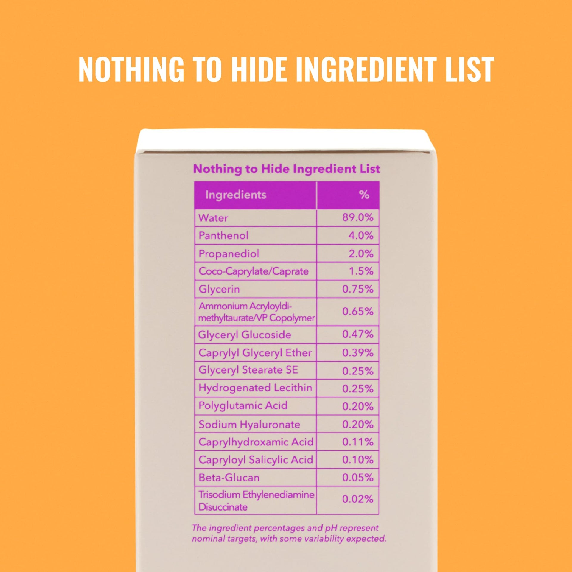 This powerful formula is full of nourishing ingredients designed to moisturize and soothe dry, dehydrated skin. The serum contains 4% Panthenol (vitamin B5) helps stimulate cells to boost skin barrier function and improve moisture retention. Polyglutamic Acid works to provide immediate hydration, encouraging the skin to look plump, vibrant, and hydrated. Our formula also contains Beta Glucan can help reduce redness and soothe skin while providing immediate and long-term moisturization.