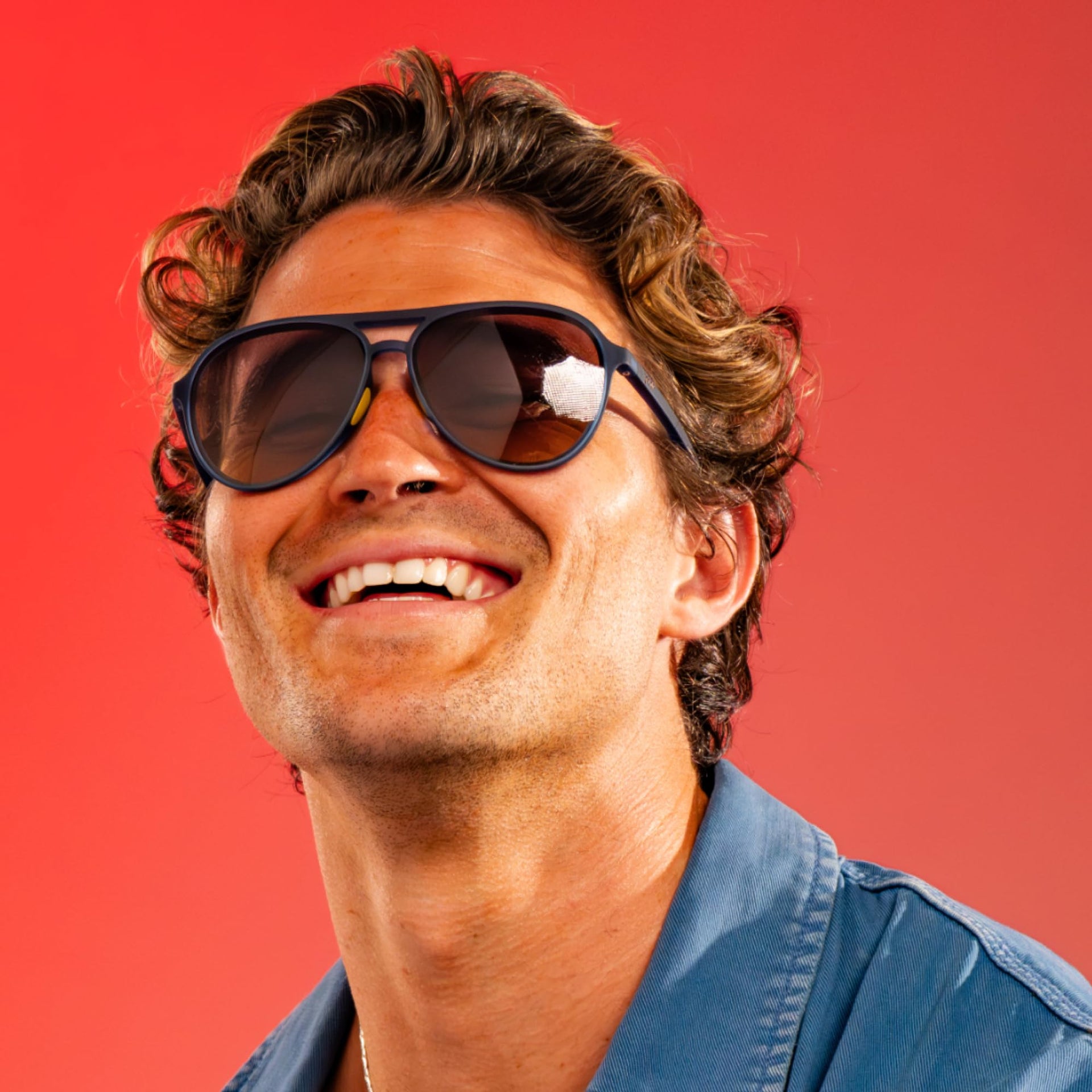 goodr Frequent Skymall Shoppers Polarized Aviator Sunglasses, Large Sized (Mach G), Navy Frame with Amber Gradient Lens, Dark to Light Tint, UV400