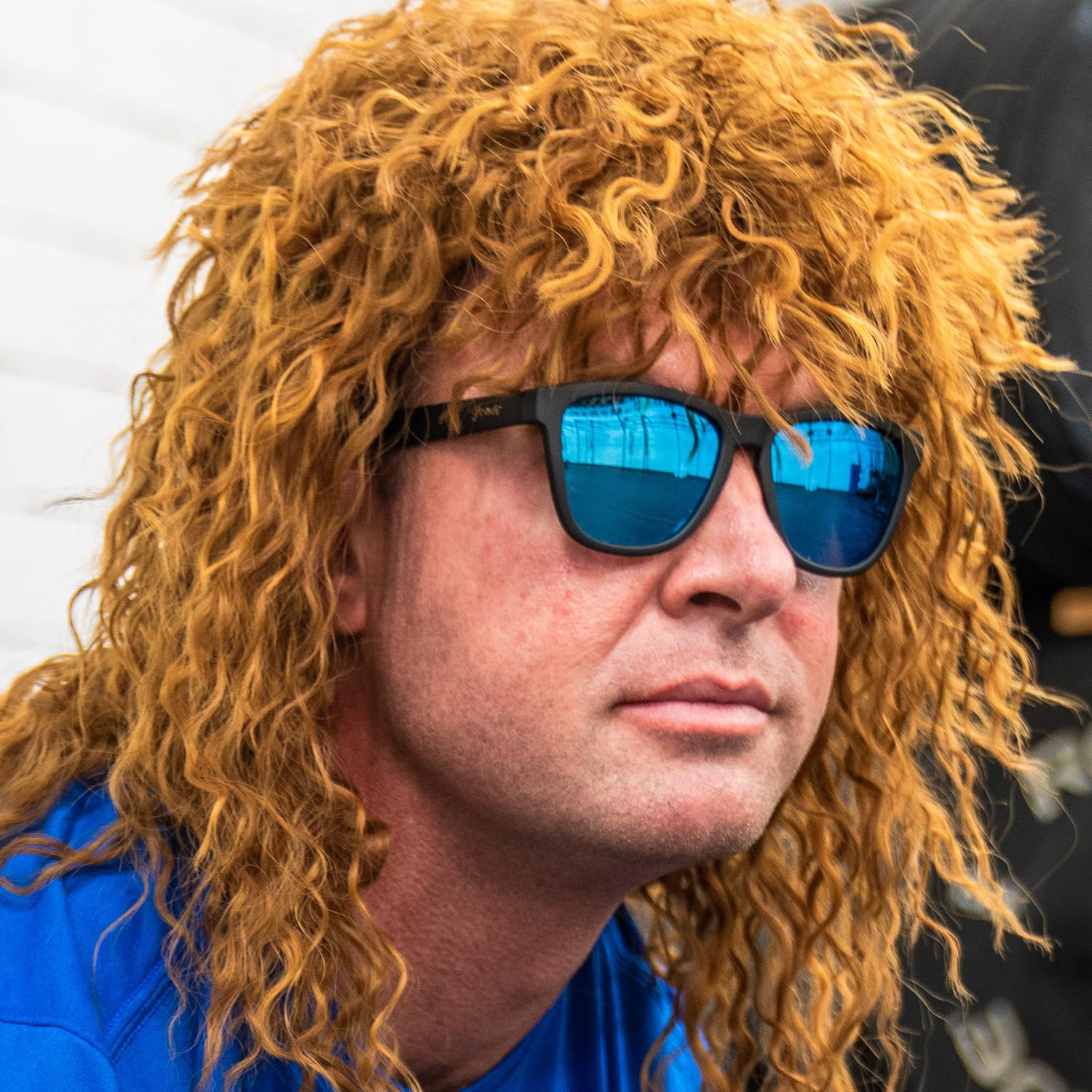 These black & blue sunglasses offer the best of both worlds: business in the frame, party in the lens. A special grip coating prevents slipping and bouncing, making them ideal for running, golfing, frolfing, cartwheeling & other sweaty activities.