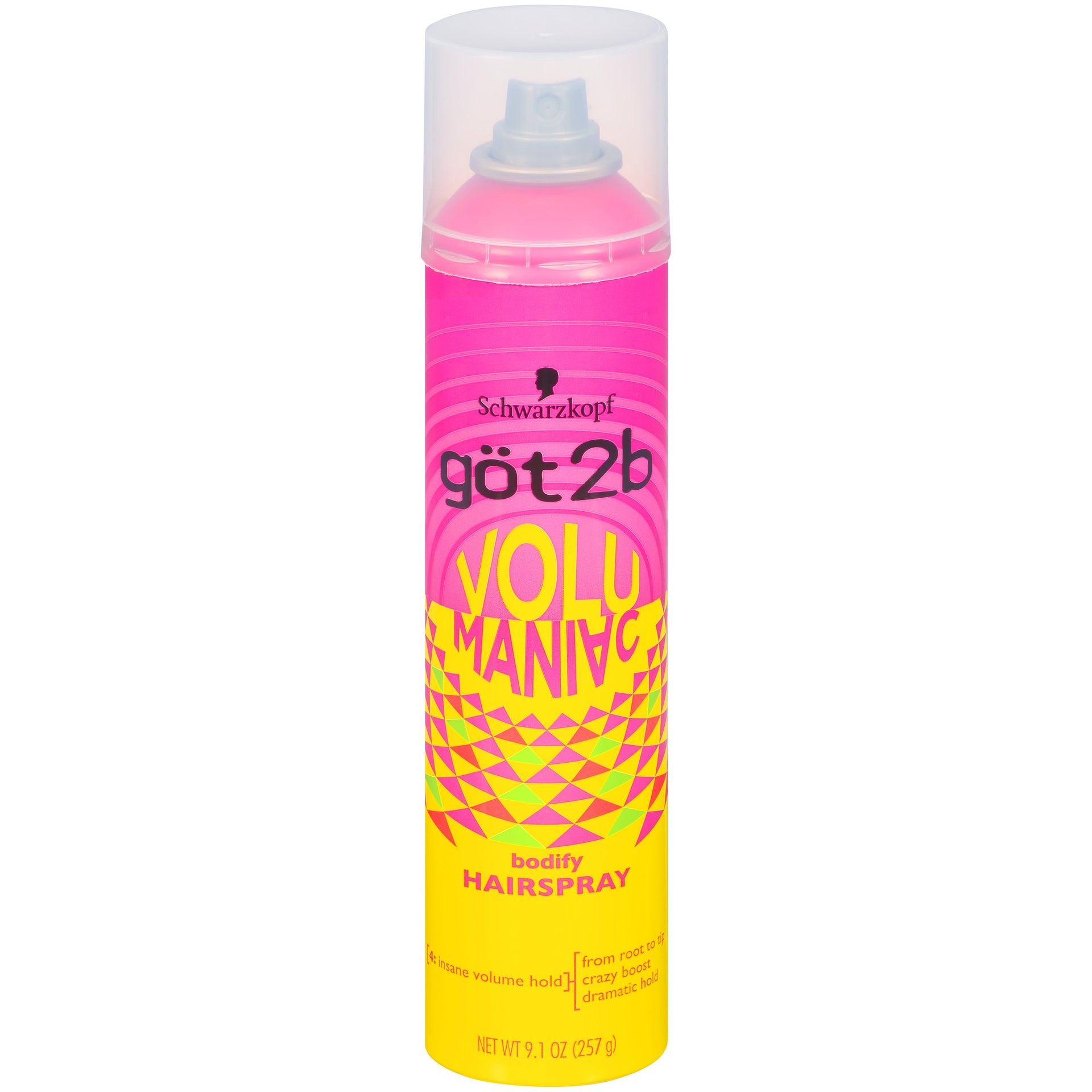 Details: got2b Volumaniac—Go crazy with insane volume hold from root to tip with got2b Volumaniac bodify Hairspray. Immediately lock in volume with enough hold for that high drama look you crave.
