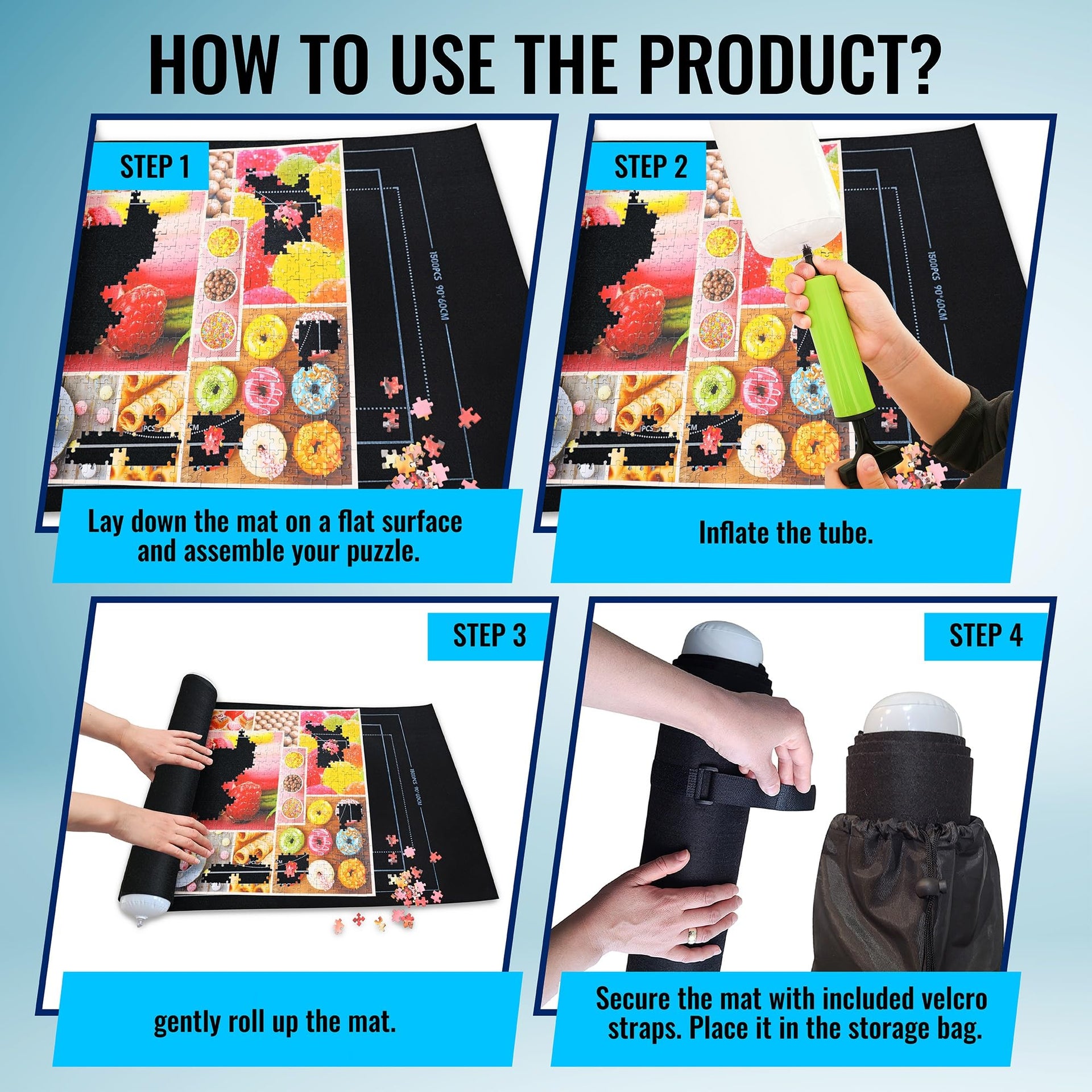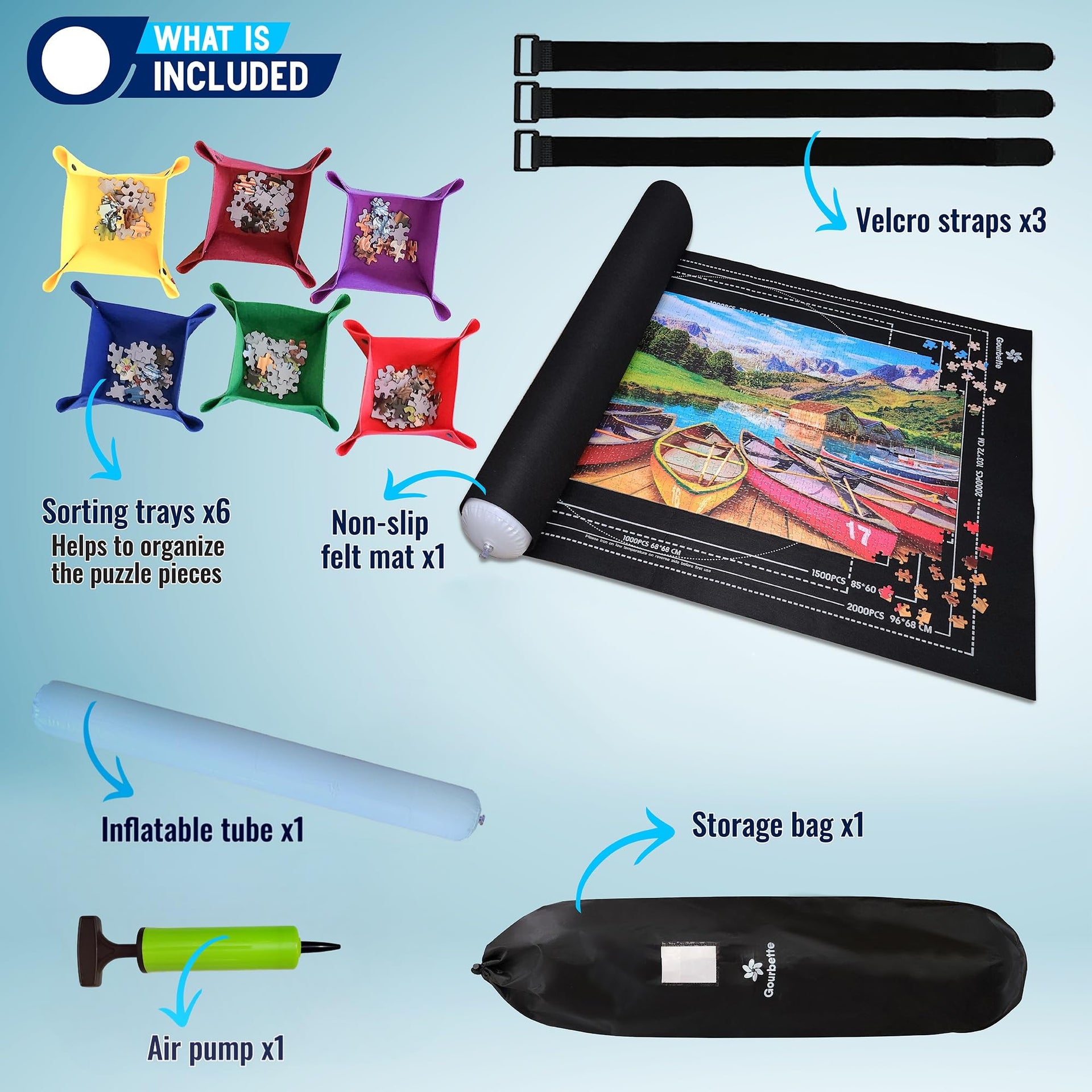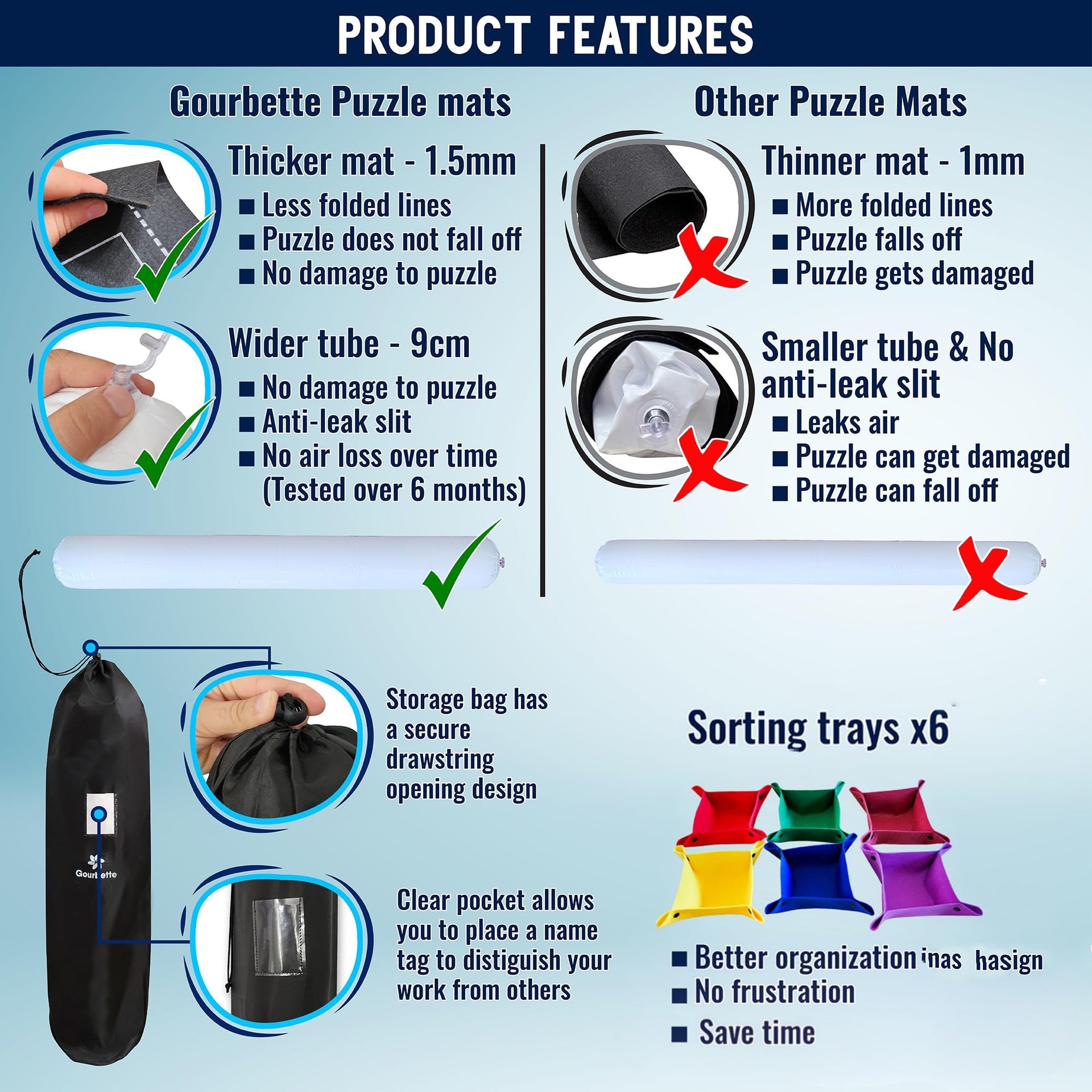 Gourbette Black Jigsaw Puzzle Mat Roll Up – Portable Puzzle Board & Saver for 500/1000/1500/2000 Piece Puzzles, Storage & Travel Keeper