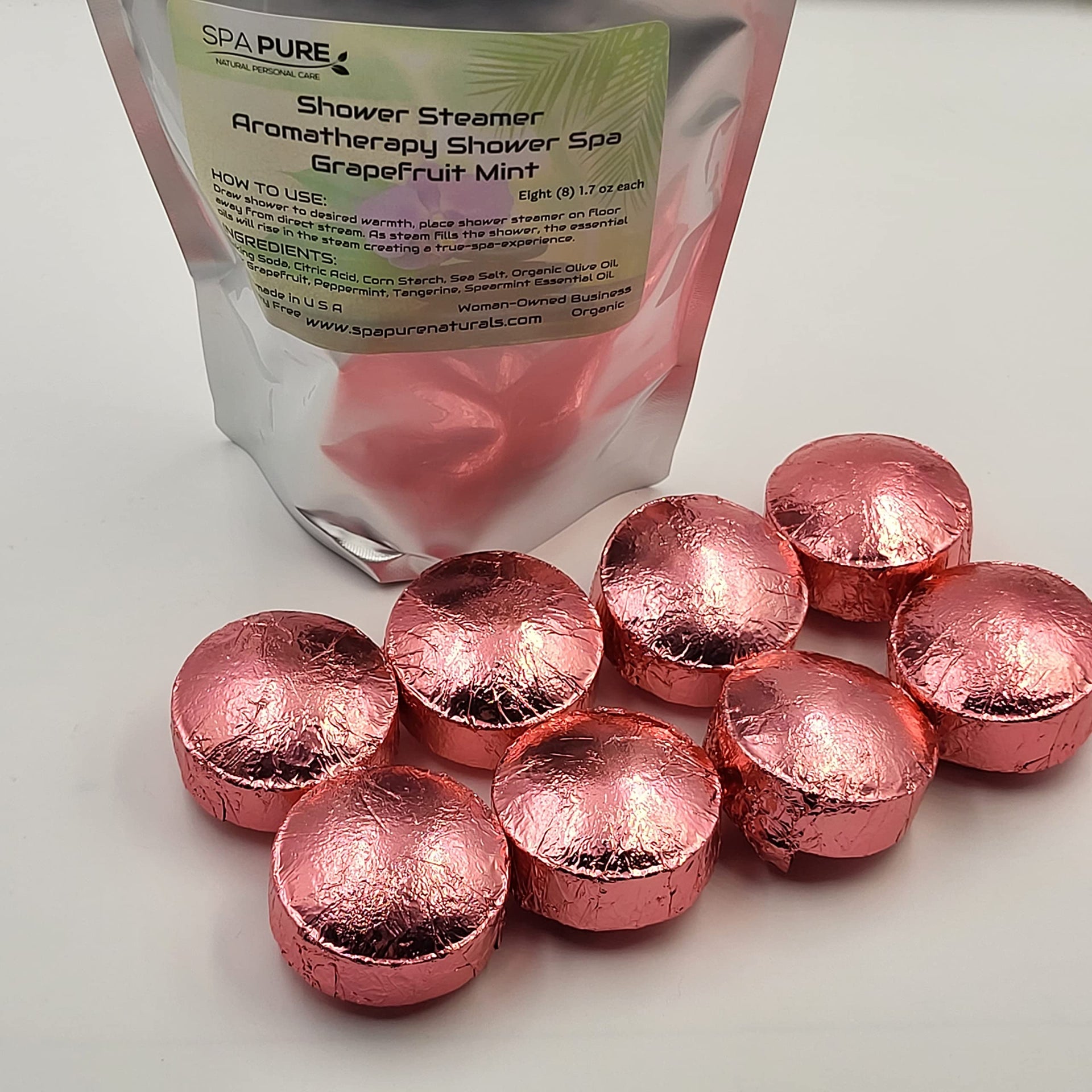 Grapefruit Mint Aromatherapy Shower Bombs: USA Made with 100% Natural/Organic Essential Oils - Transform Your Shower (8 Count) Pack of 1