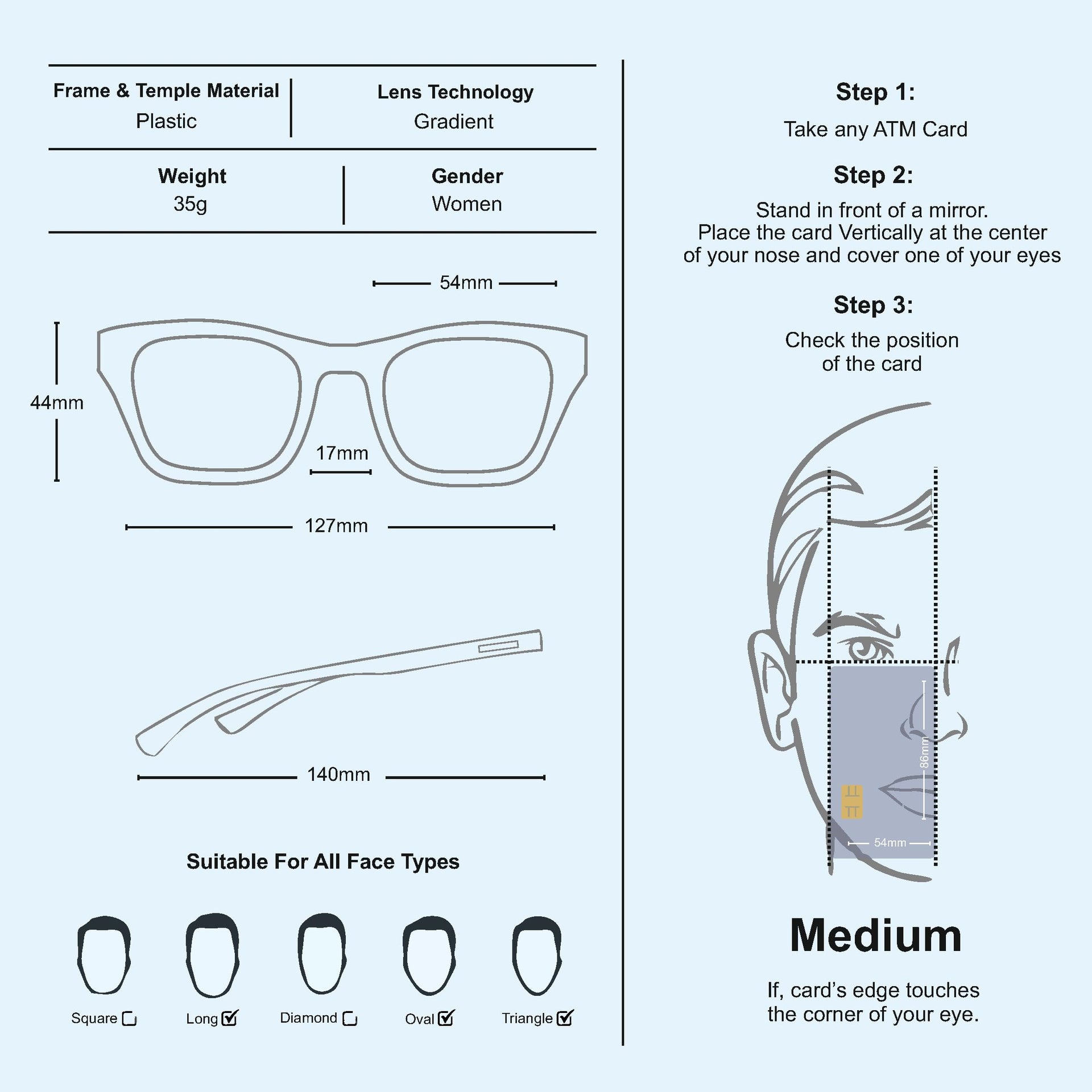 Give your everyday style a touch of retro glam in the GUESS GU7810. Cat-eye frame shape. Plastic frame and gradient lenses. UV sun protection lens coating. Fixed nose pads. Small stud embellishments on frame. Branding on temple. Semi hard protective case included.