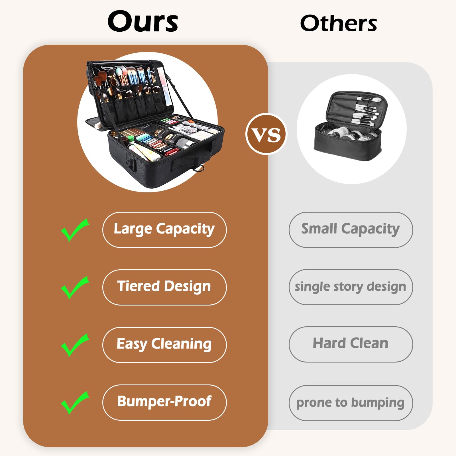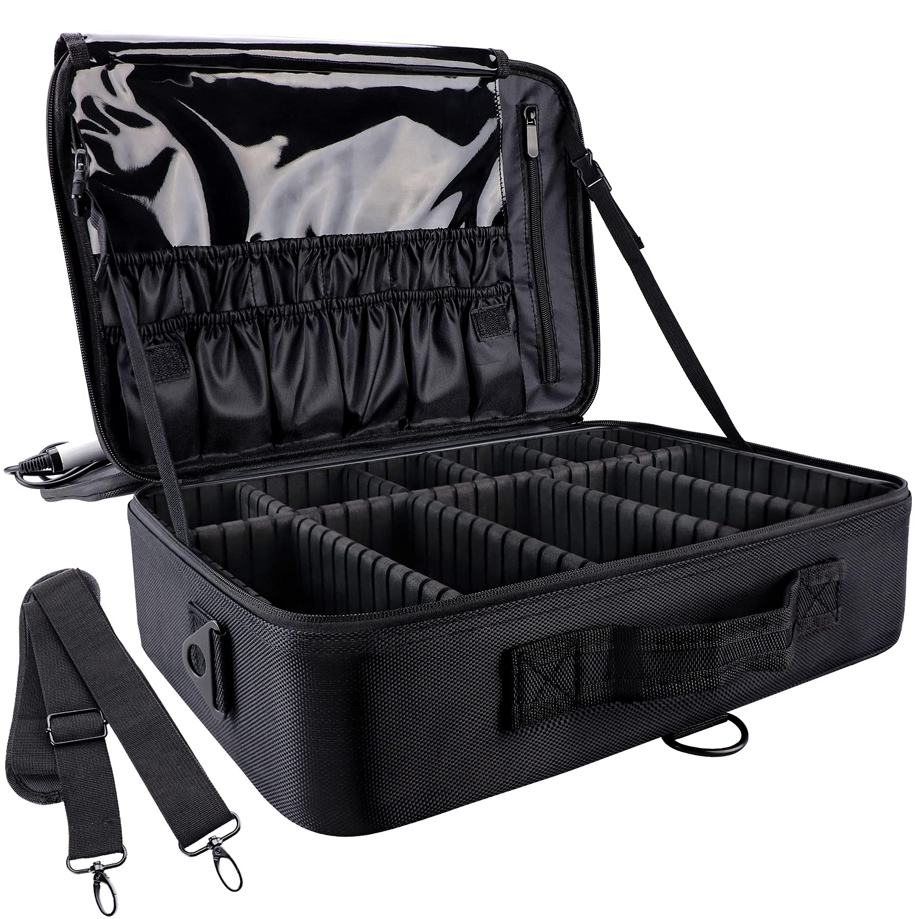 GCZC Large 16.5" Travel Makeup Train Case – Professional Cosmetic Organizer with Adjustable Dividers, Brush Storage & Shoulder Strap (Black)