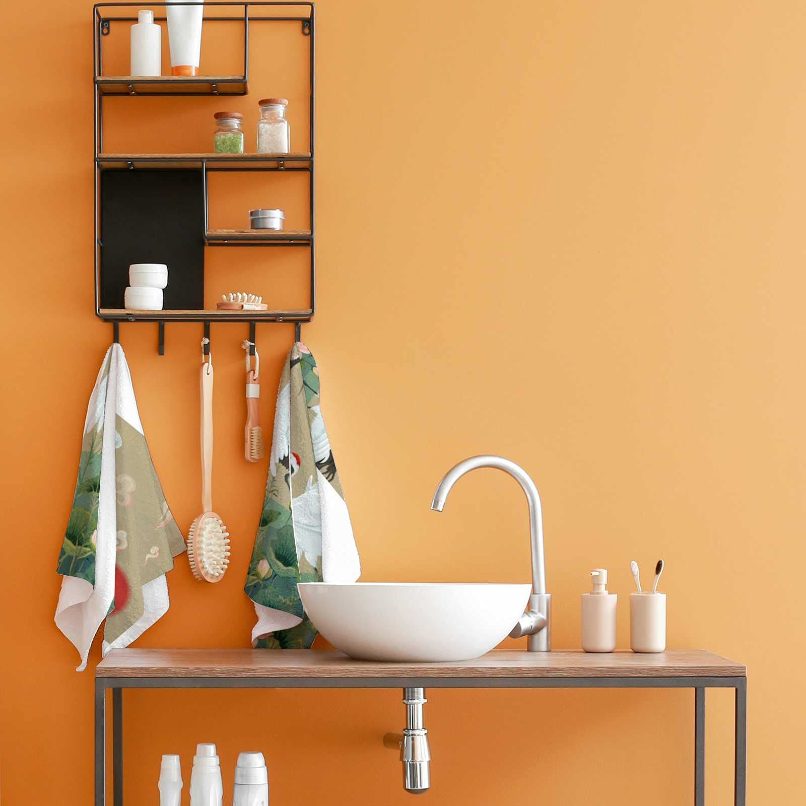 Hapuxt Hand Towels Face Towels Set of 2 Japanese Cranes Lotuses Asian Oriental Style Soft Comfortable Polyester Microfiber Fast Water Absorbent…