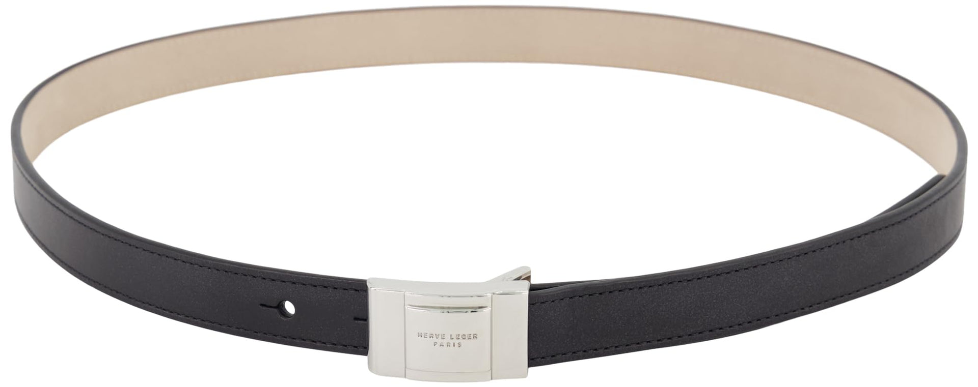Part of the Resort '25 collection, the 20mm Logo Plaque Belt is cut from refined cowhide leather with stitch detailing and polished hardware. The peg closure is finished with Hervé Léger engraving.