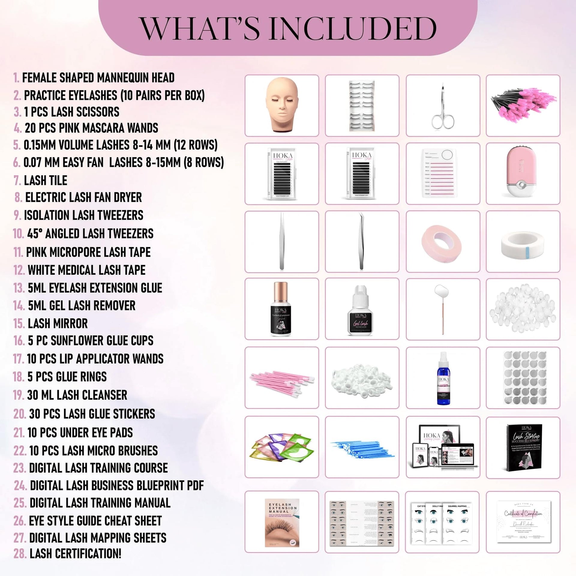 Hoka Lash Eyelash Extension Kit & Training Course and Certification, Professional Lash Extension Kit for Beginners Includes Practice Mannequin Head