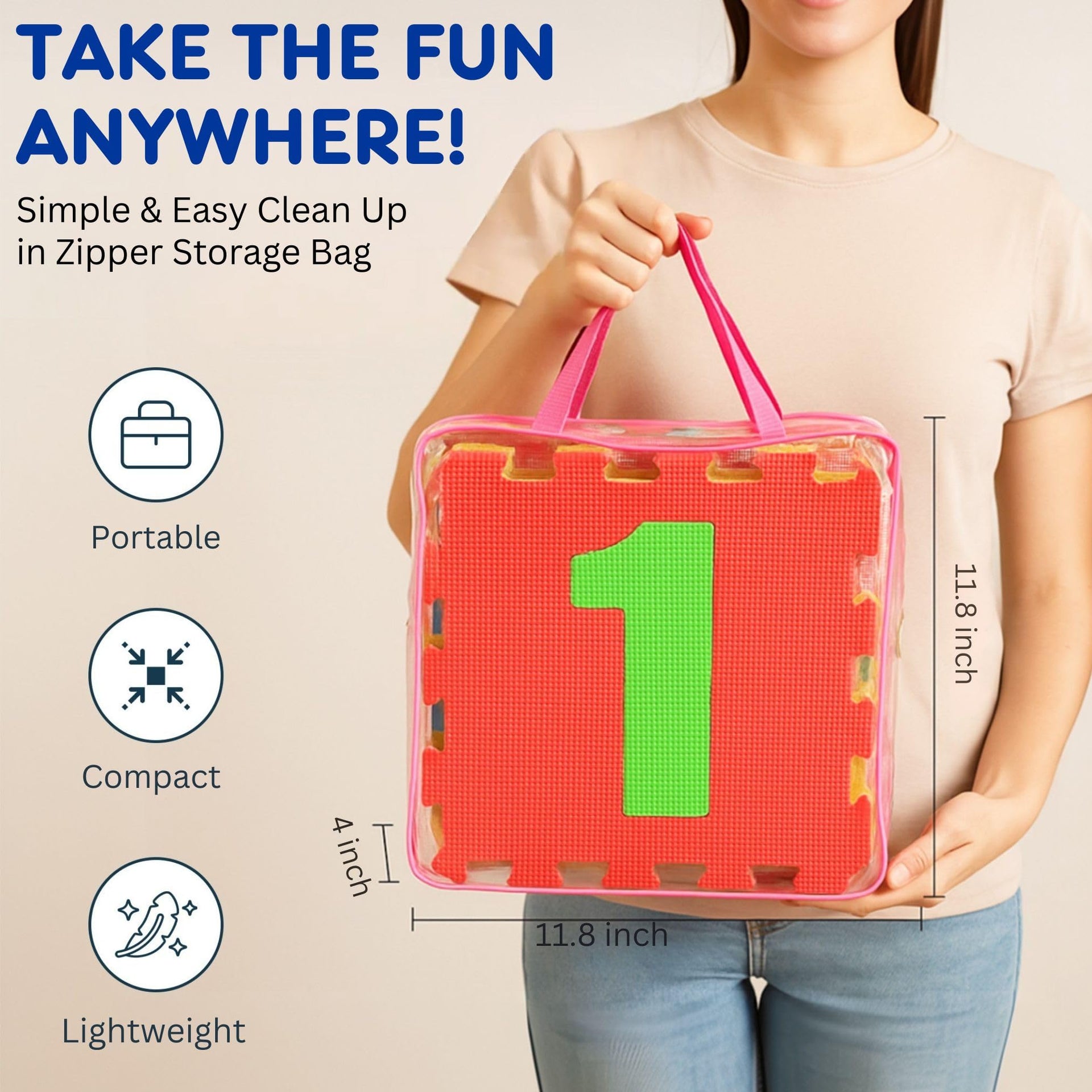 - Safe Eva Foam: Large, easy-to-handle 12" x 12" foam pieces interlock securely; made with bright, vibrant colors to enhance visual stimulation; includes two place markers for added fun