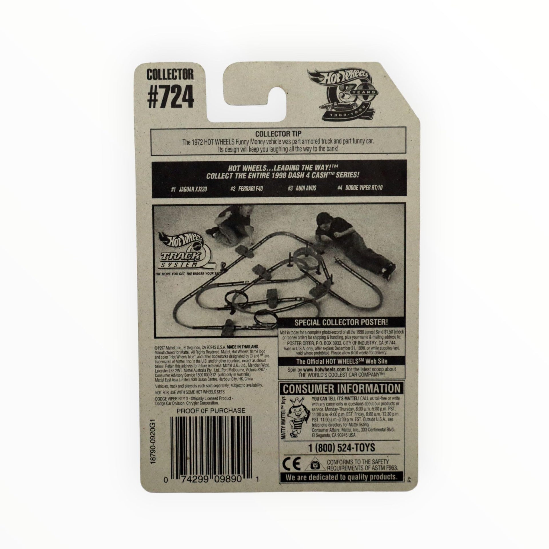 Hot Wheels 1998 Dash 4 Cash Series - Dodge Viper RT/10 - Special $20 Bill Paint Job - Collector #724 - Limited Edition - Collectible 1:64 Scale