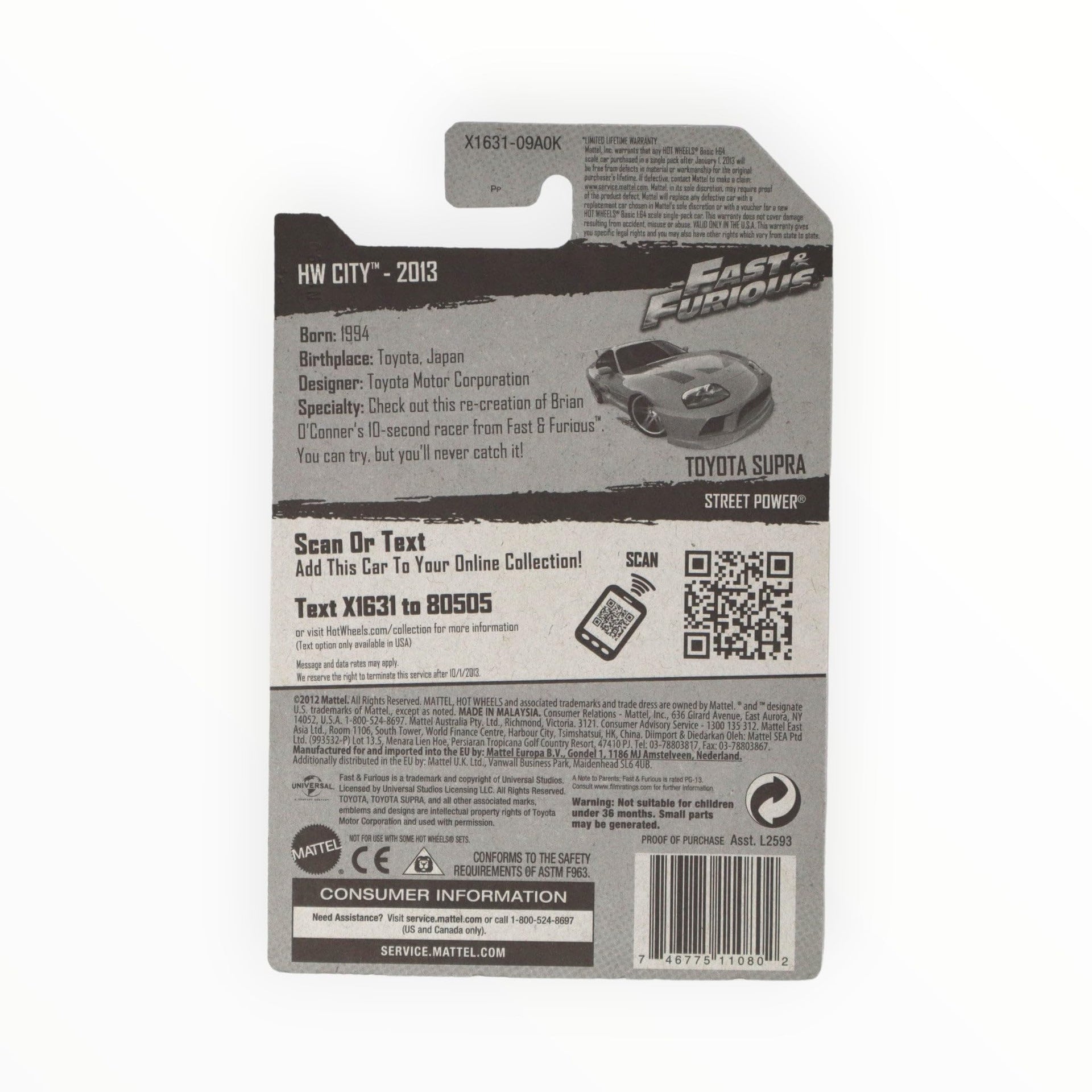 • SUPRA Hot Wheels 2013 HW City Series Fast & Furious Toyota Supra 1:64 Scale Collectible Die Cast Metal Toy Car Model #5/250