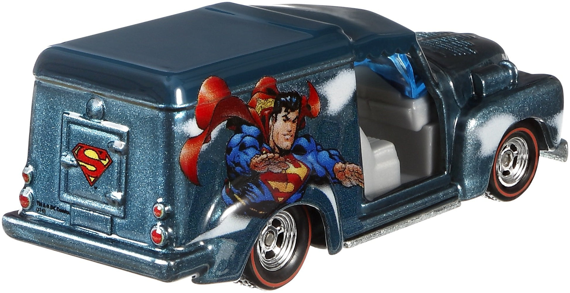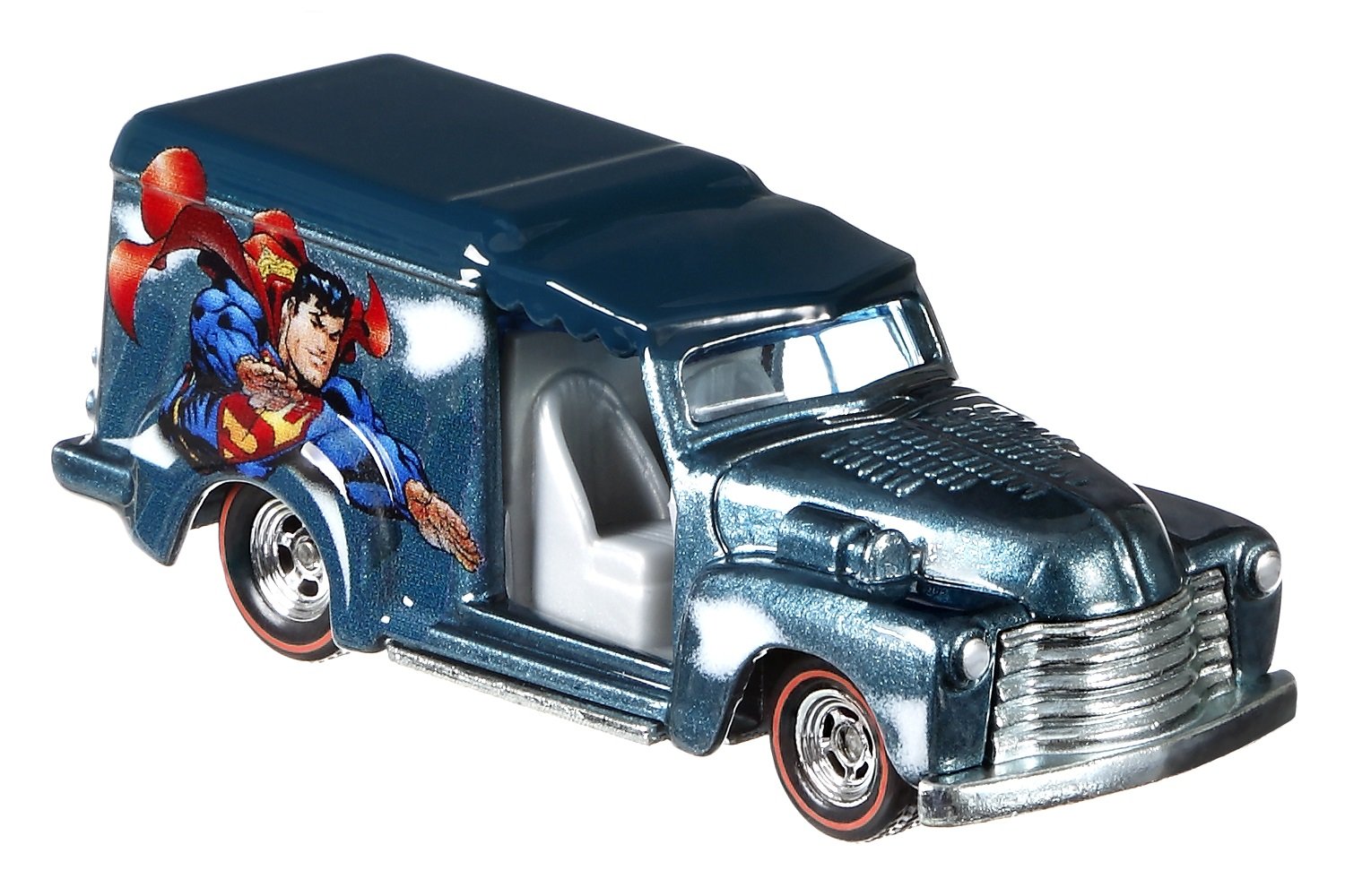 • The six Hot Wheels castings included in the assortment are: '71 Chevy El Camino (Superman/Lee) Custom '52 Chevy (Superman/McGuinness) 1980 Dodge Macho Power Wagon (Batman/McGuinness) Volkswagen T1 Panel Bus (Superman/Miller) '34 Dodge Delivery (Batman/Lee) Quick D-Livery (Batman/Miller)