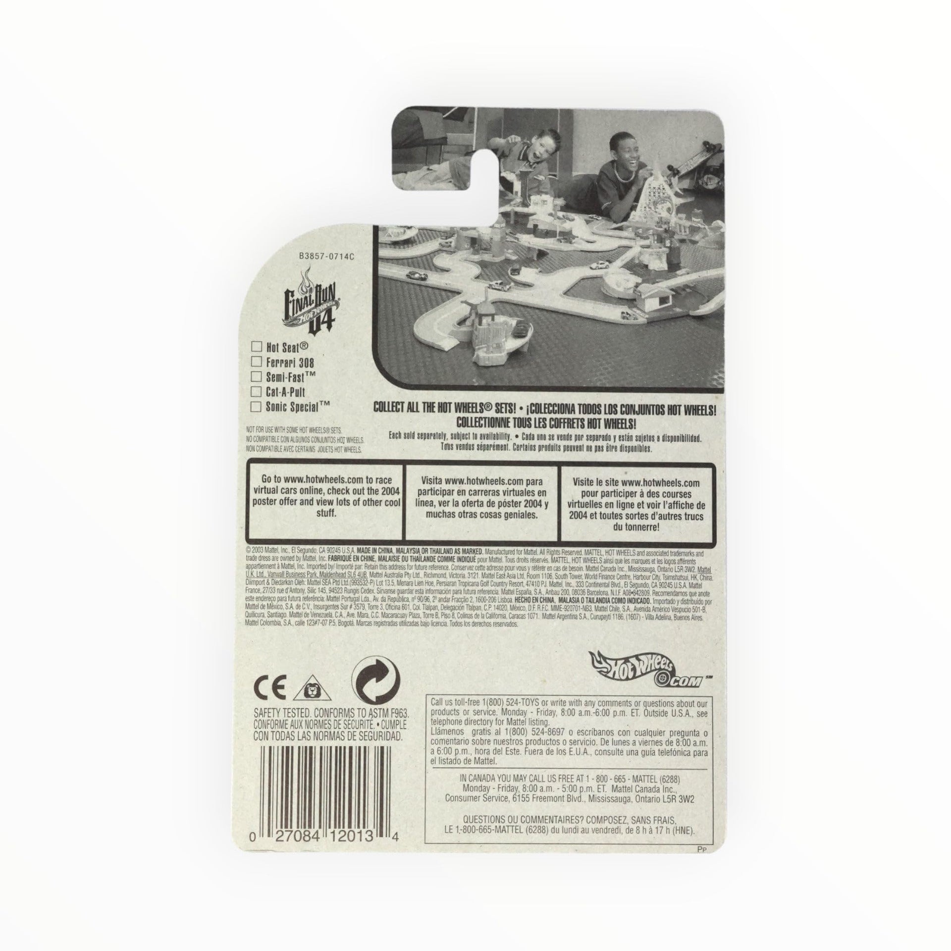 In 2004, Hot Wheels unveiled its Hot 100 line, comprising of 100 new models. These new models included cartoonish vehicles such as the Tooned (vehicles based on the larger Hot Tunerz line of Hot Wheels created by Eric Tscherne), Blings (boxy bodies and big wheels), Hardnoze (enlarged fronts), Crooze (stretched out bodies), and Fatbax (super-wide back tires and short bodies). Fatbax models include Toyota Supra and a Corvette C6. Mattel also released 2 First Editions Batmobiles. Last of their kind Final Runs include the Hot Seat, and Ferrari 308. Keep collecting to find the Ferrari Heat, Pride Rides, Track Aces, Wastelanders, Roll Patrol, Autonomicals, Demonition, Warlords, Star Spangled 2, Crank Itz, Tag Rides, Cereal Crunchers, and 12 Treasure Hunts. 212 collector card numbers makes 2004 Hot Wheels mainline set ready for collecting and play.