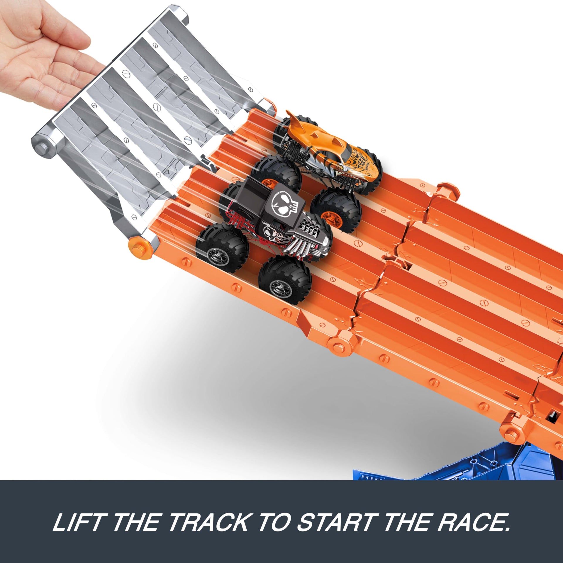 • Contents: Line up the monster truck at the gate and lift it up to start the race! The first goal of the monster truck wins! Race not only on monster trucks, but also mini cars. Includes 2 Monster Trucks!