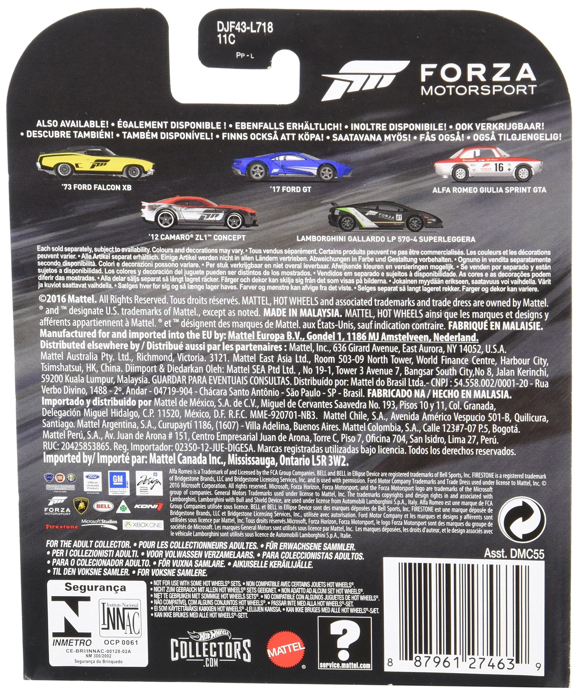 Hot Wheels celebrates the world of entertainment with 1:64 scale replicas of popular vehicles from properties like Batman, Back to the Future, Forza and Grand Turismo. These iconic media vehicles are immortalized in this assortment of twenty exclusive models for the adult collector. Not for use with some Hot Wheels sets. Each sold separately, subject to availability. Colors and decorations may vary.