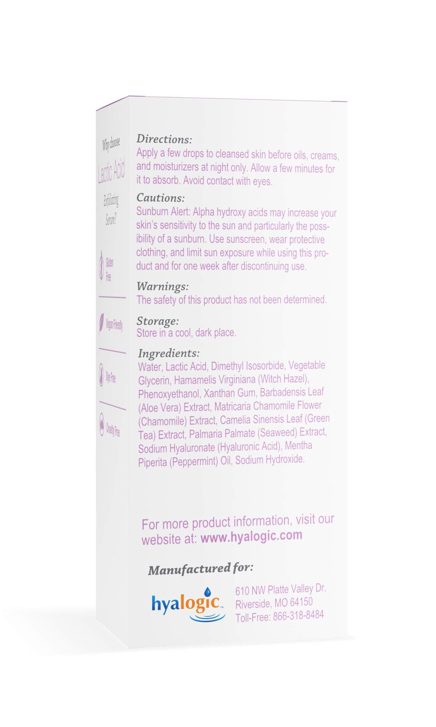 • GENTLE EXFOLIATION: Lactic acid is an alpha hydroxy acid that effectively combats early signs of aging. It gently exfoliates to reveal clearer, more radiant looking skin. Carefully formulated with hyaluronic acid and essential oils to retain moisture. This Hyaluronic Acid serum will rejuvenate your skin, seeping into the deepest layers without any harsh side effects.