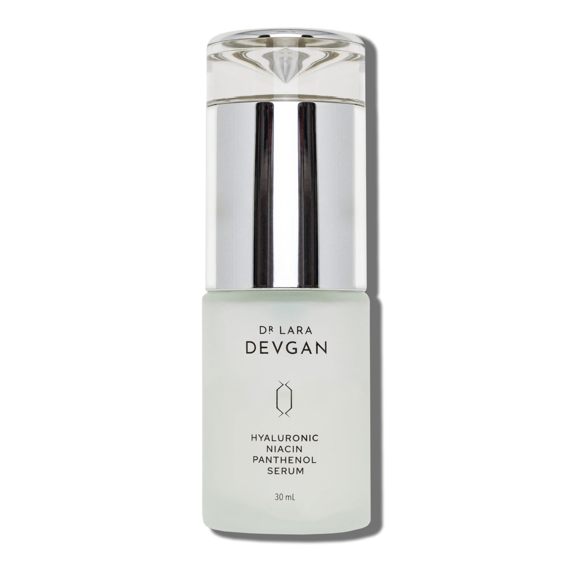 A deeply hydrating, soothing serum formulated with 2% Hyaluronic Acid, 2% Niacinamide, and 2% Panthenol to provide essential moisture, improve skin texture, and support a healthy, radiant complexion. Ideal for daily use to keep skin plump, smooth, and balanced. The Hyaluronic Niacin Panthenol Serum by Dr. Devgan Scientific Beauty combines the moisturizing power of hyaluronic acid with the calming benefits of niacinamide and the skin-strengthening effects of panthenol. This lightweight, fast-absorbing serum is designed to quench thirsty skin, reduce redness, and improve resilience, making it a perfect daily solution for all skin types. The result is soft, supple, and revitalized skin that looks radiant and feels deeply hydrated.