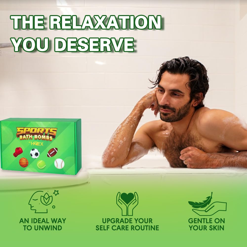 HZEX Sports Themed Bath Bombs Gift Set - 6 Piece Novelty Fizzy Balls with Basketball, Tennis, Baseball, Soccer, Football & Boxing - Fun Spa Kit…