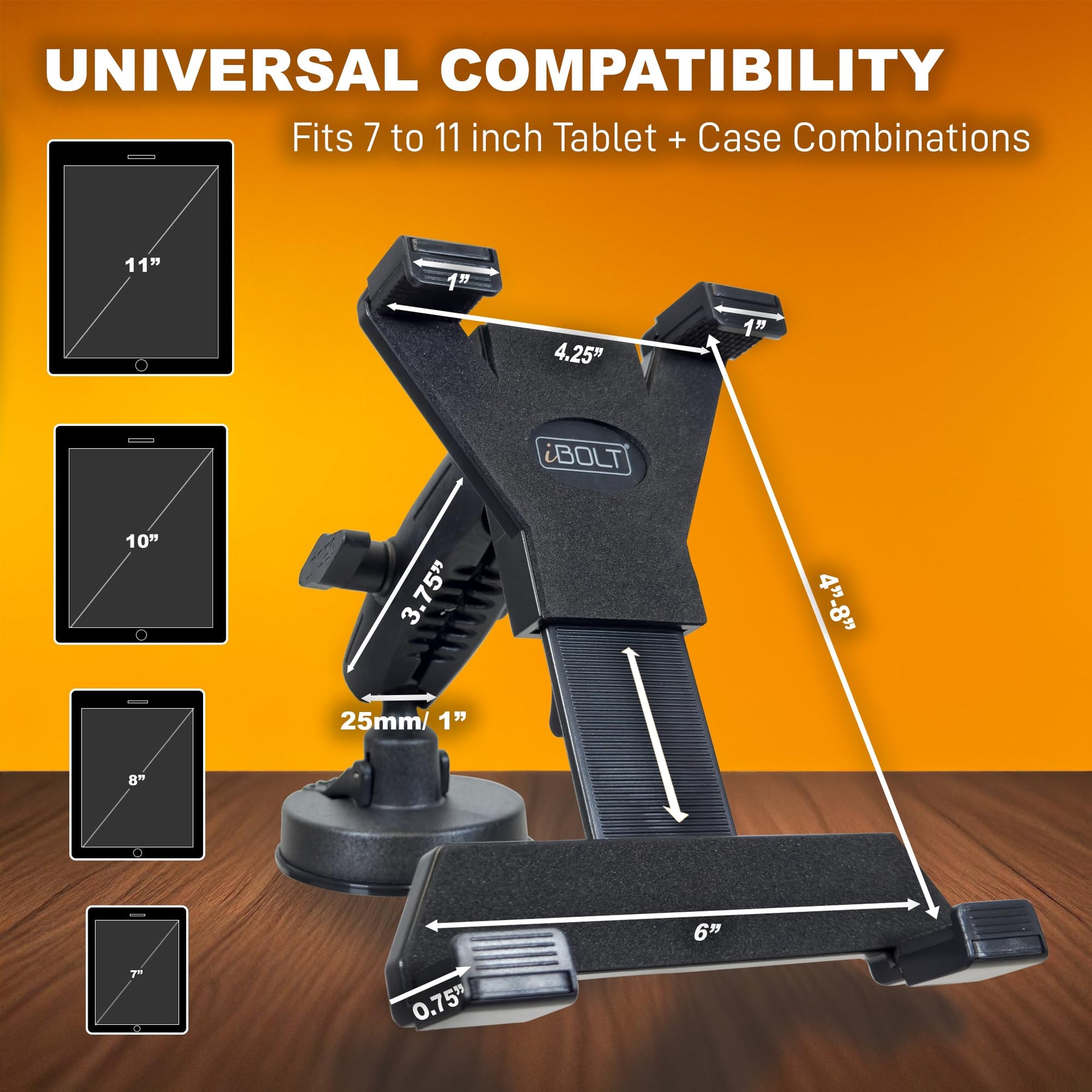 • INCLUDES- Heavy Duty Suction Mount, Dash Disc, and Easy to install adjustable Tablet holder.